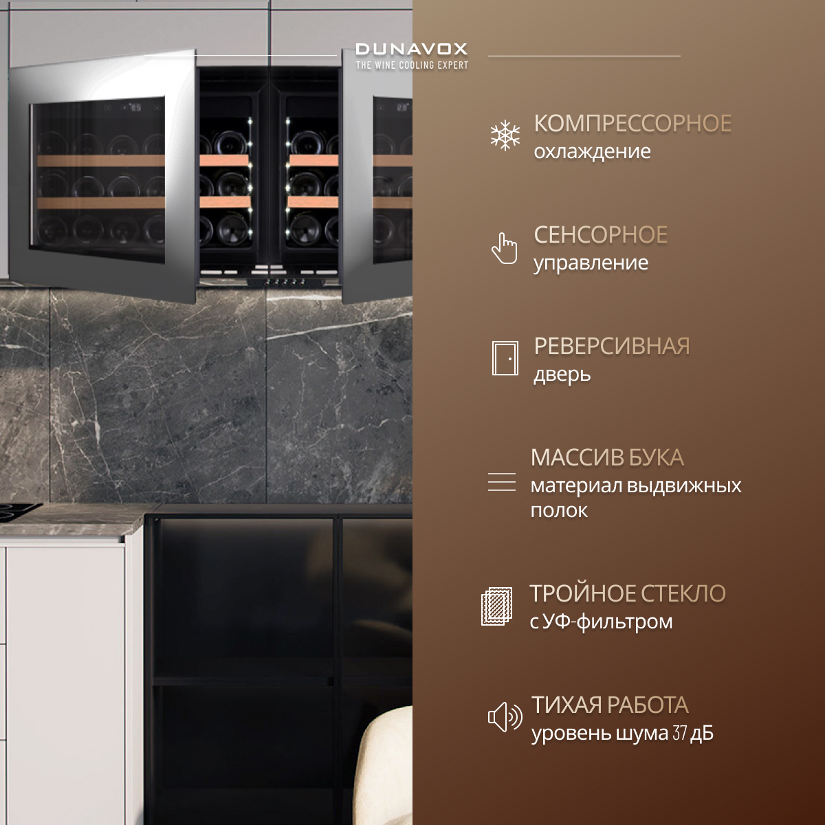 коллекция встраиваемых винных шкафов dunavox