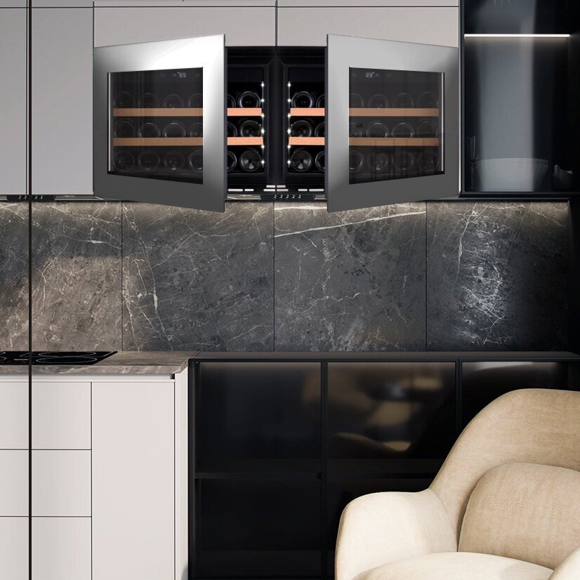 дисплей, перевешиваемые двери, Антивибрационная система, Винная камера, Влево, Вправо, Дизайнерское оформление, Ручки легкого открывания, Светодиодная подсветка, Система контроля влажности