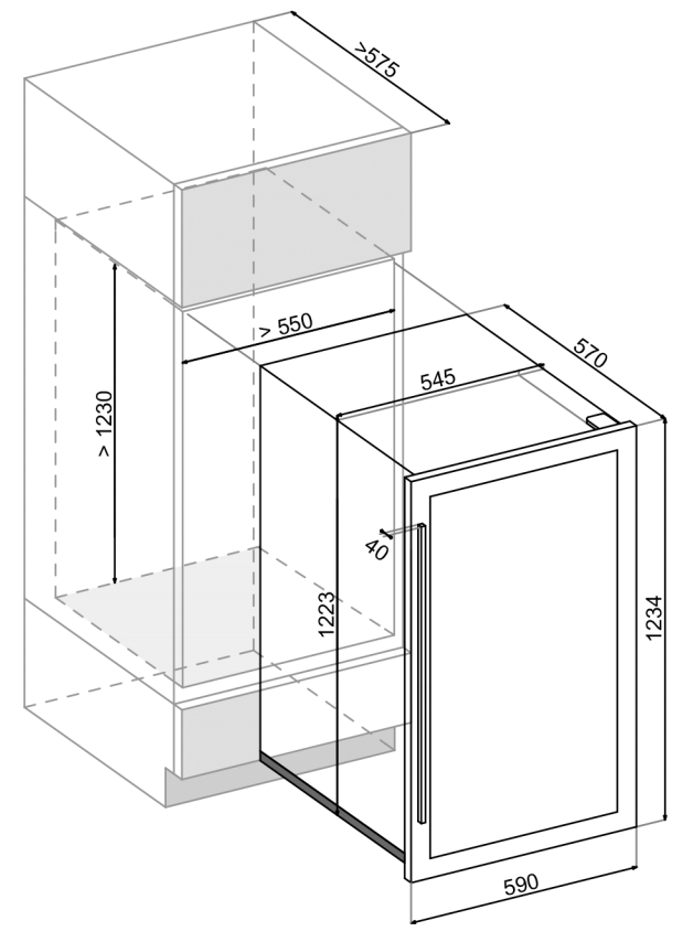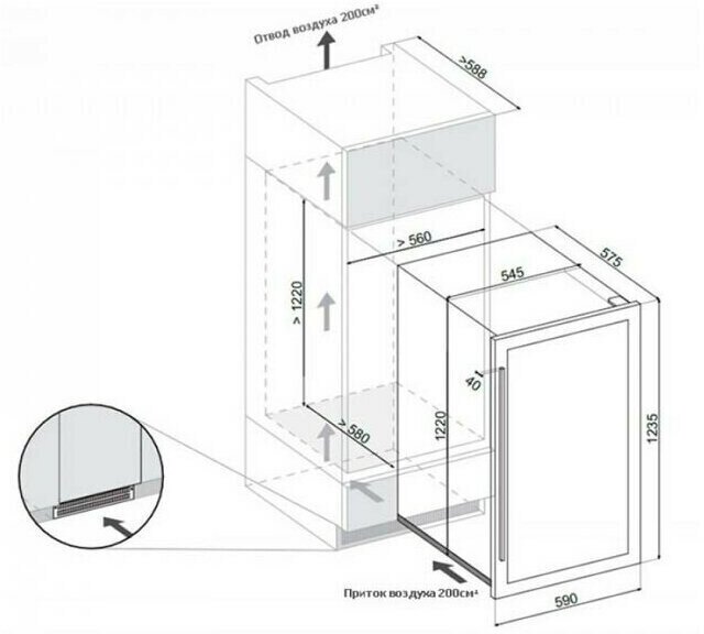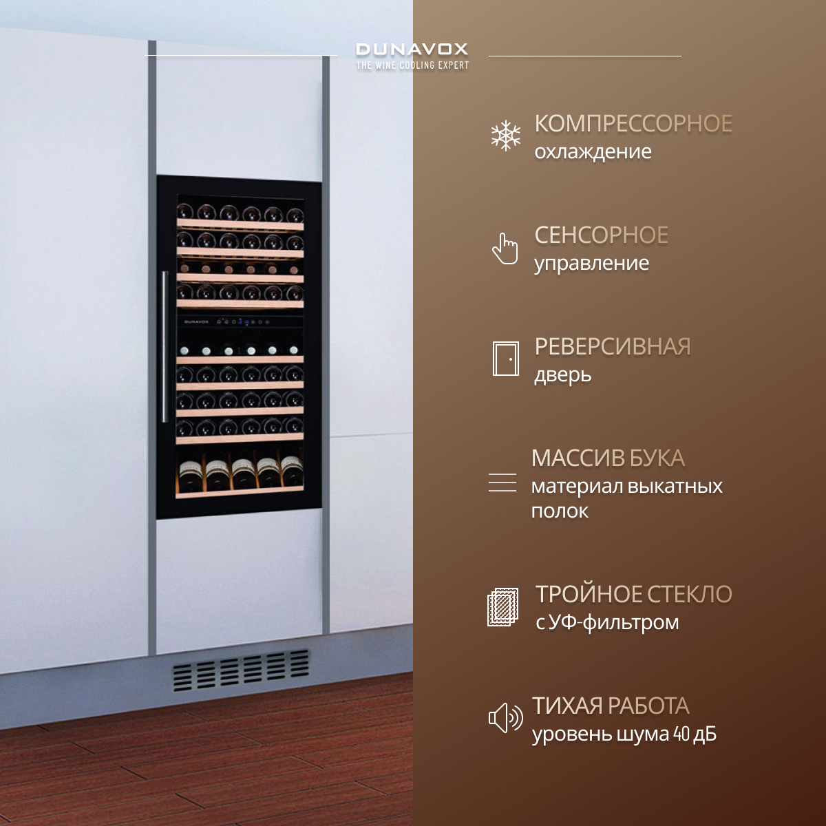 Ручка двери: Чёрная / Стальная Материал корпуса: Сталь Демонстрационное освещение Рамка двери: Чёрная Тип встраивания: В нишу / В колонну Термостат: Электронный Тип освещения: трехцветное (синий, янтарный, белый) Тип дерева полок: массив бука