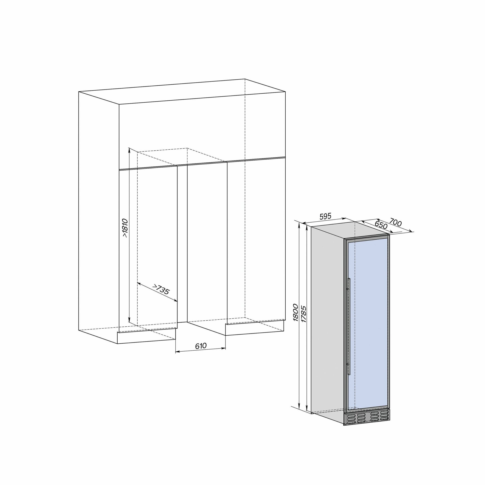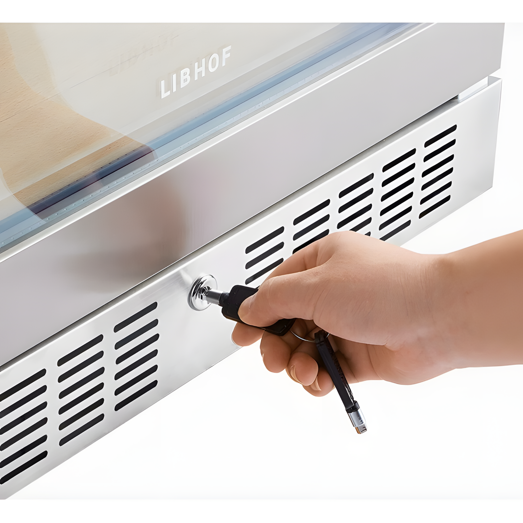 дисплей, перевешиваемые двери, ручка с толкателем, замок, подсветка