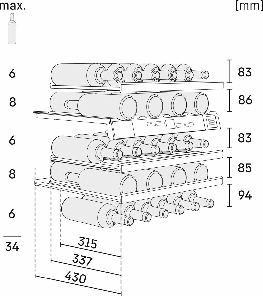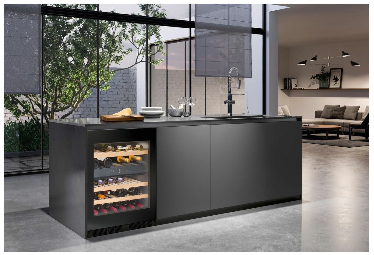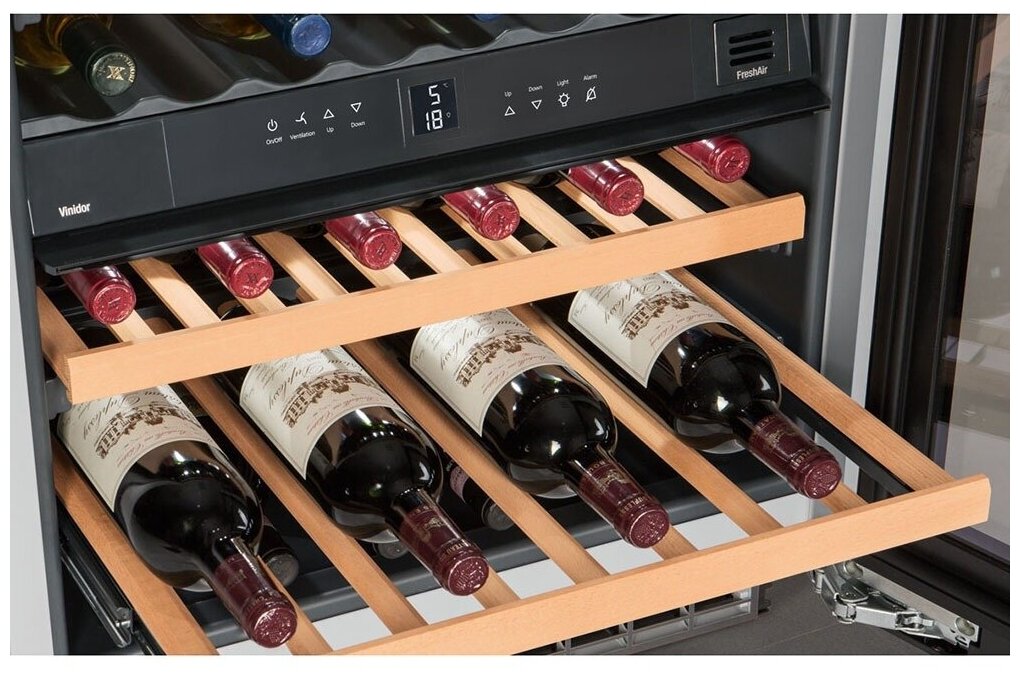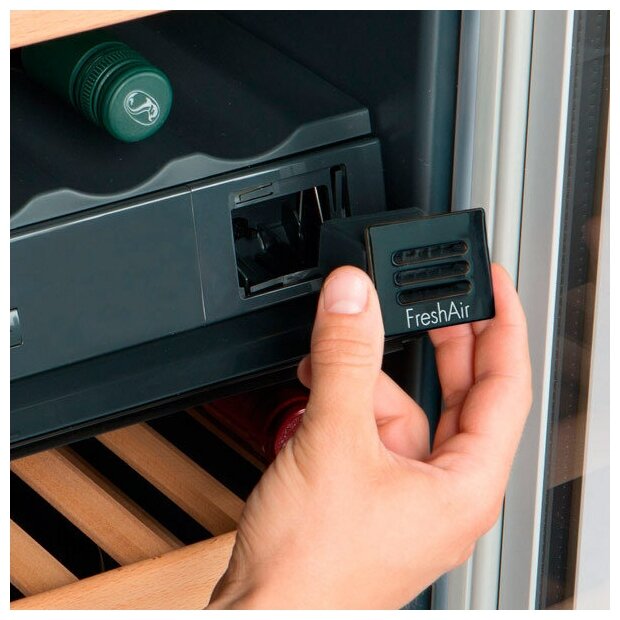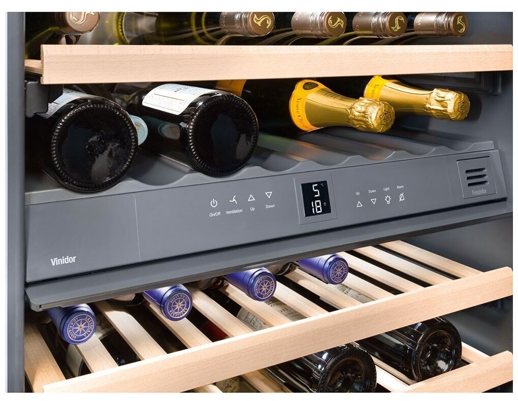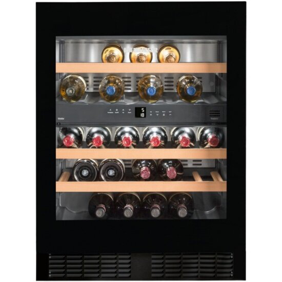 Две температурные зоны, Перенавешиваемая дверца, Циркуляционное охлаждение, Доводчик двери с системой SoftSystem, полки на телескопических направляющих.
