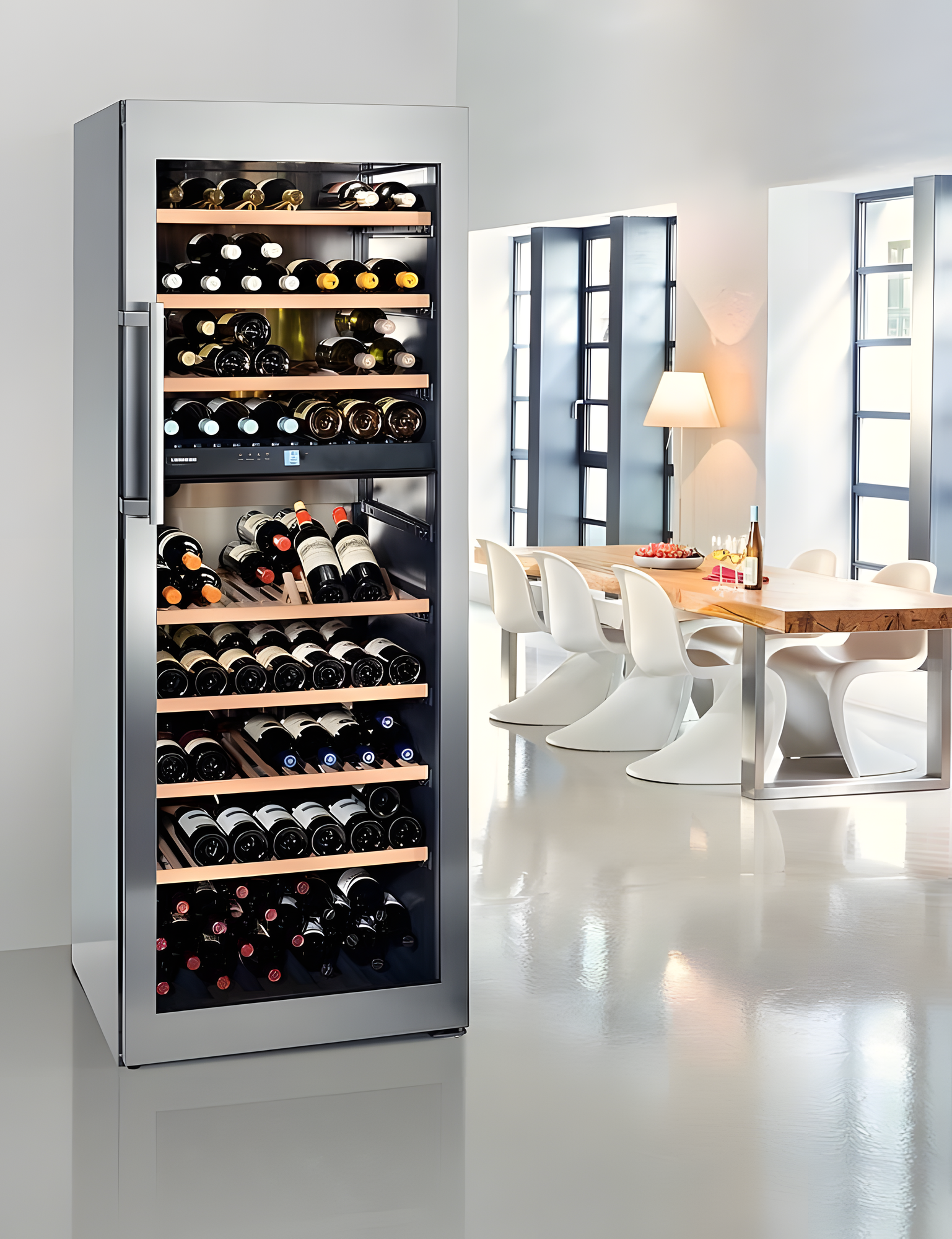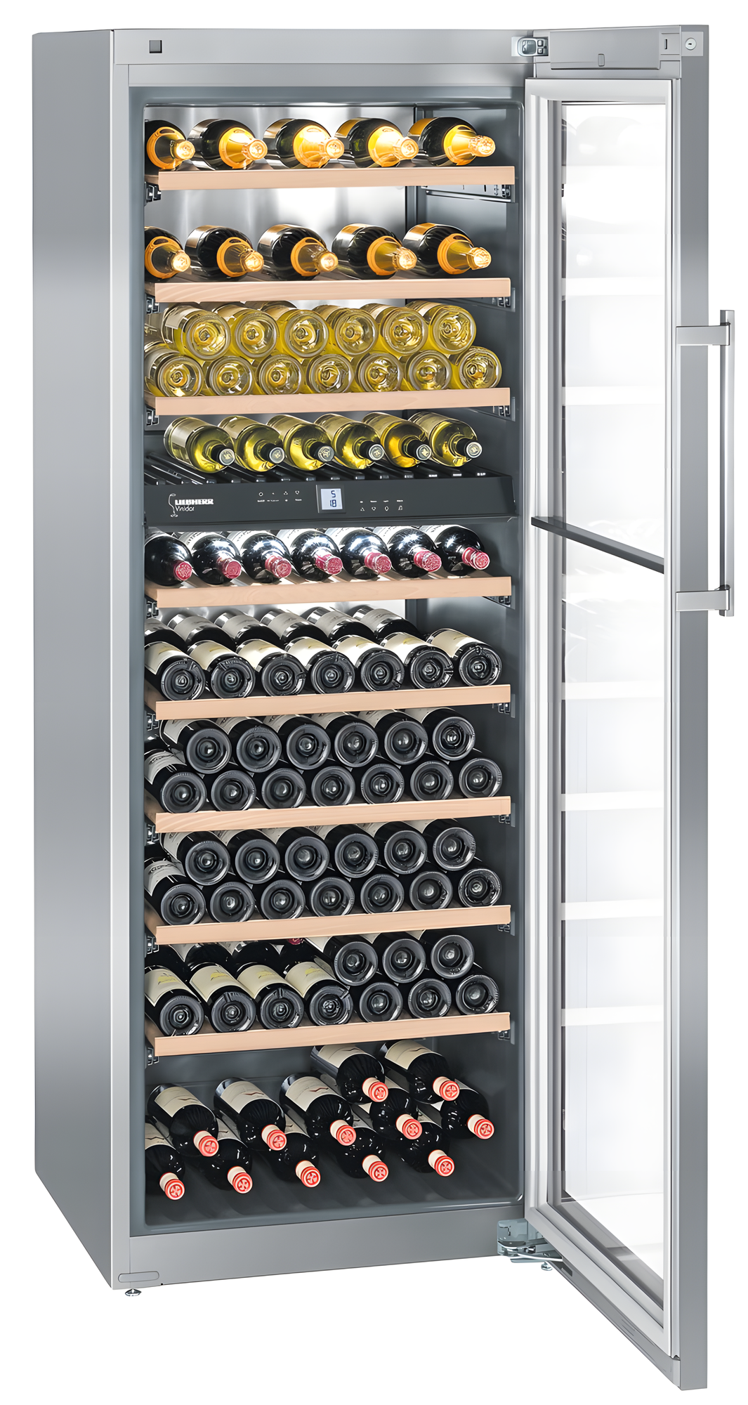 дисплей, перевешиваемые двери, ручка с толкателем, Автоматический доводчик двери, Антивибрационная система, Винная камера, Вправо, Замок, Открывающиеся вправо, Ручки легкого открывания, Светодиодная подсветка, Система контроля влажности, внутренний дисплей, внутренний дисплей; полки на телескопических направляющих, защита от детей, инверторный компрессор, полки на телескопических направляющих