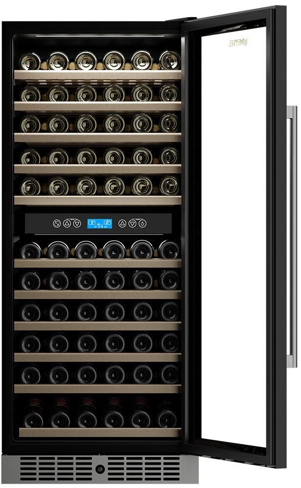 динамическое охлаждение Динамическое охлаждение Динамическая (или вентиляционная) система охлаждения обеспечивает равномерное распределение воздуха вкамере. Благодаря этому нанужном уровне поддерживается нетолько температура, ноивлажность. регулируемые ножки Регулируемые ножки Регулируемые ножки— опция, которой оснащаются винные шкафы любого типа: частично иполностью встраиваемые иотдельно стоящие. Холодильники могут иметь четыре или две ножки изменяемой высоты, которые служат как для выравнивания прибора при установке, так идля изменения его высоты, что особенно важно при частичном встраивании внишу или под столешницу. Для изменения высоты ножку достаточно вывинтить, регулировка может быть как плавной, так инанескольких фиксированных уровнях. Диапазон изменения размера зависит отмодели: максимальное его значение может достигать 7см, аминимальное— 2см.