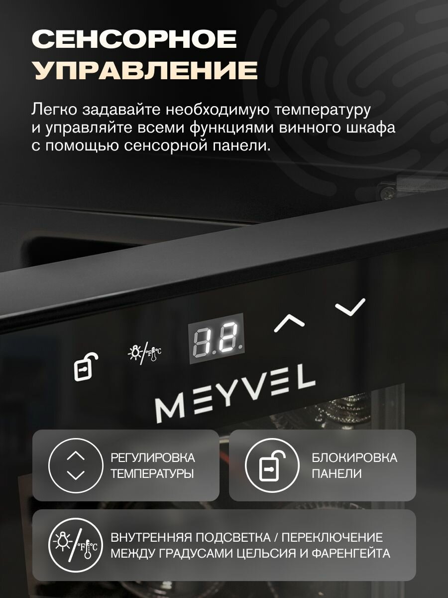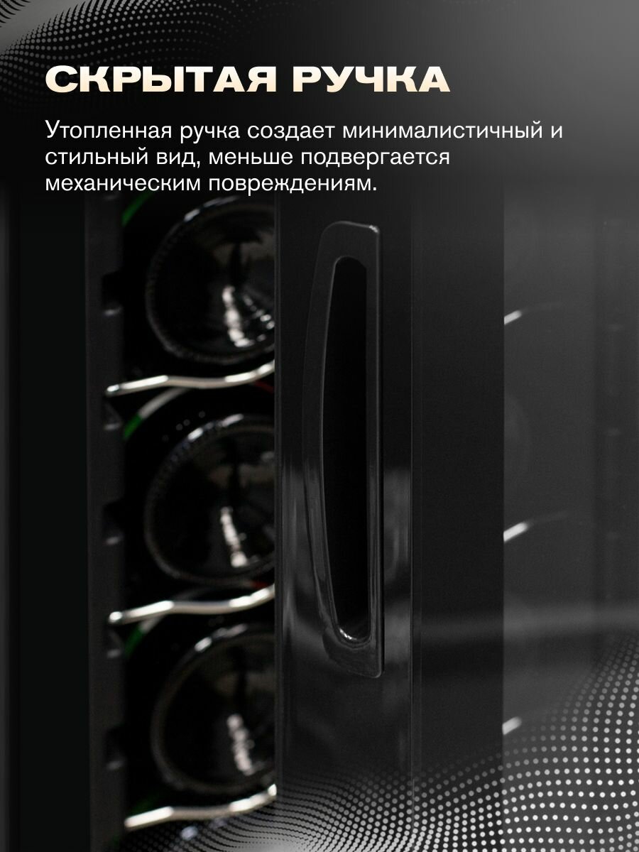 дисплей, Full No Frost, Антивибрационная система, Винная камера, Вправо, Дизайнерское оформление, Открывающиеся вправо, Ручки легкого открывания, Светодиодная подсветка, Система контроля влажности, Скрытые ручки