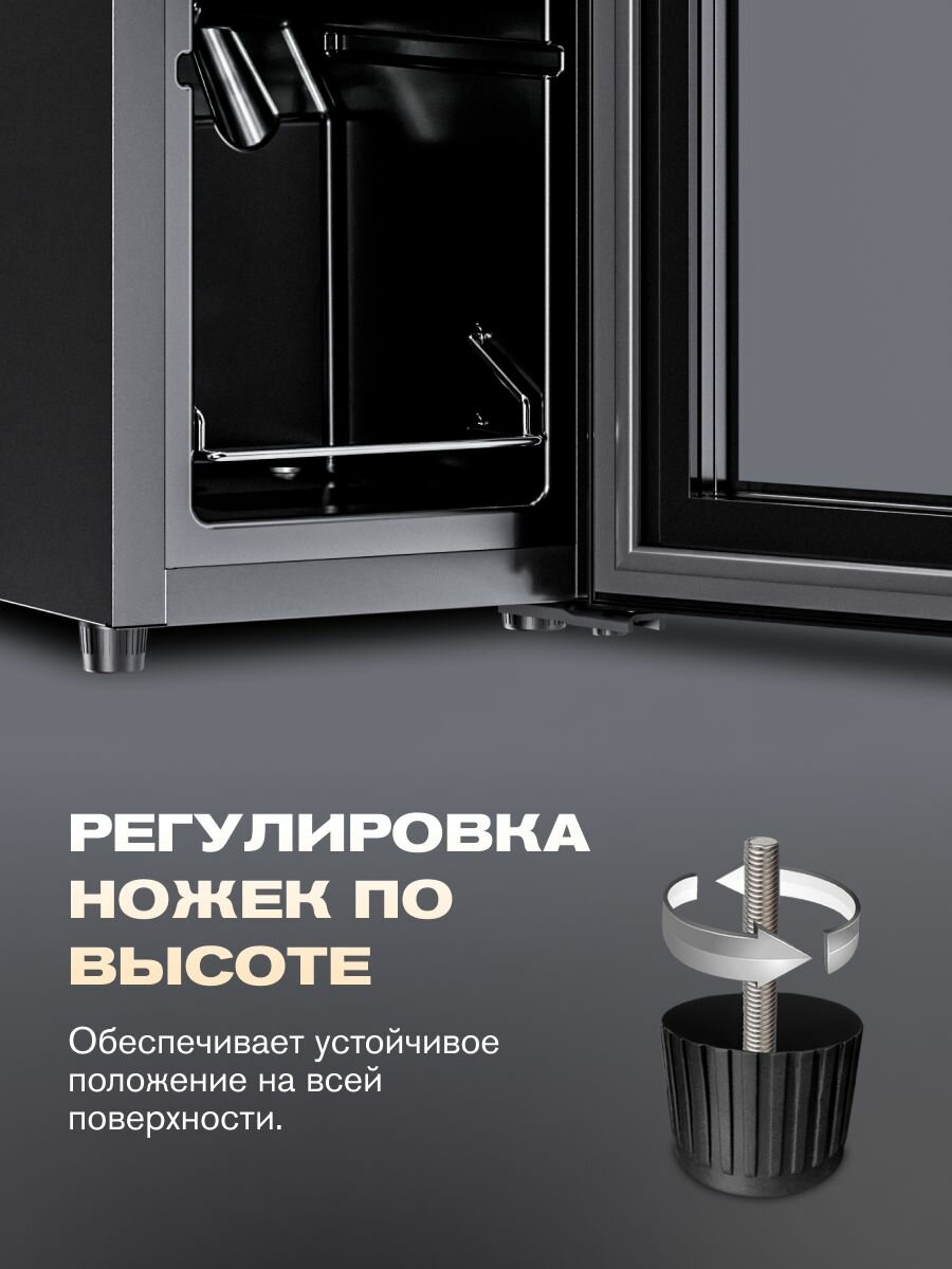 поддержание влажности в диапазоне 60-80%, автоматическая разморозка, регулируемые ножки