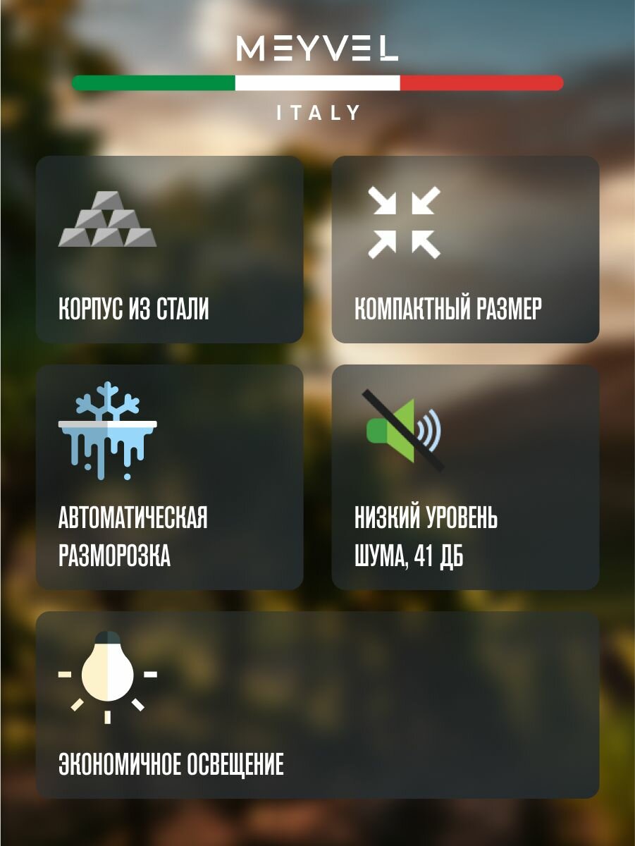дисплей, Full No Frost, Антивибрационная система, Винная камера, Вправо, Дизайнерское оформление, Открывающиеся вправо, Ручки легкого открывания, Светодиодная подсветка, Система контроля влажности