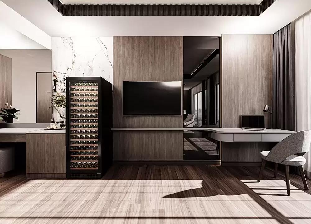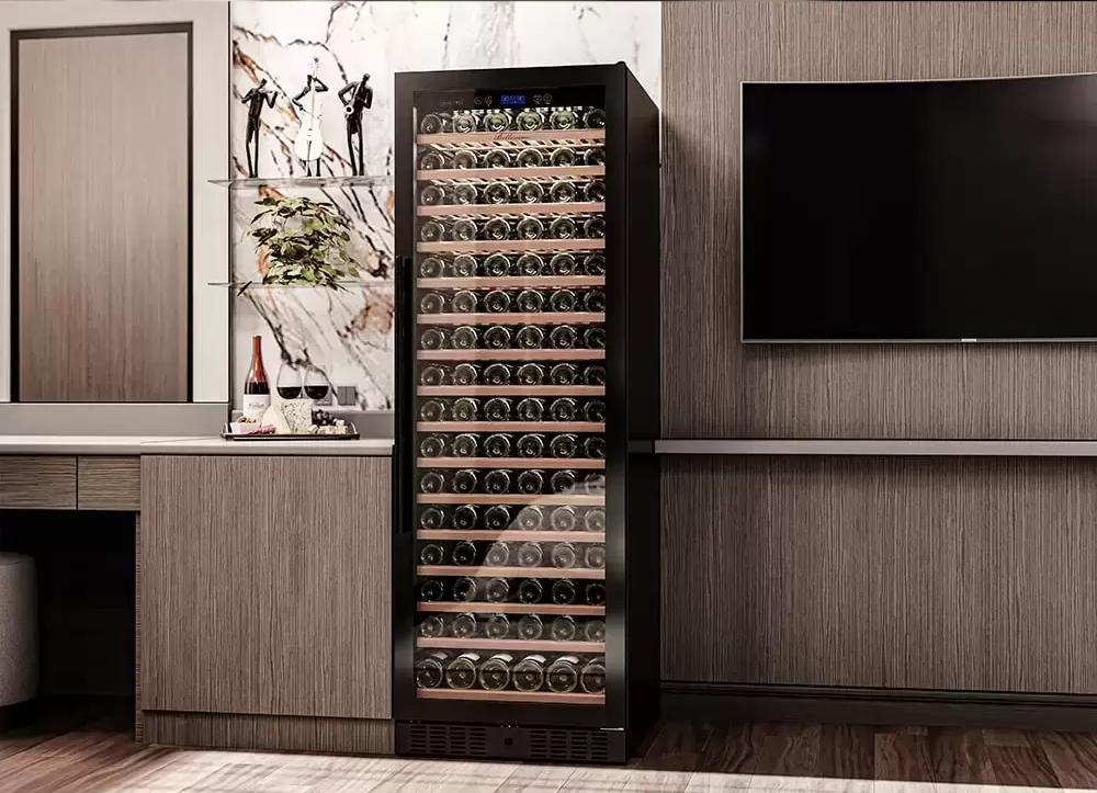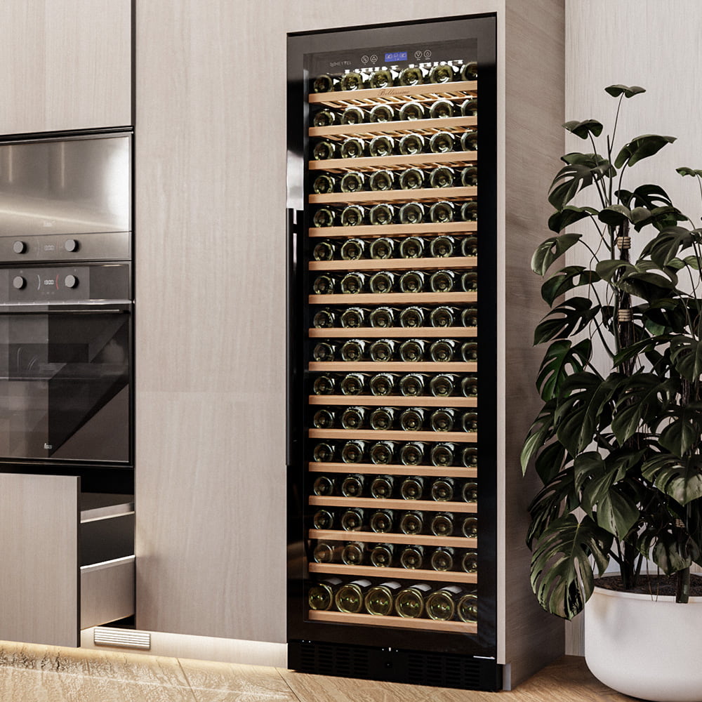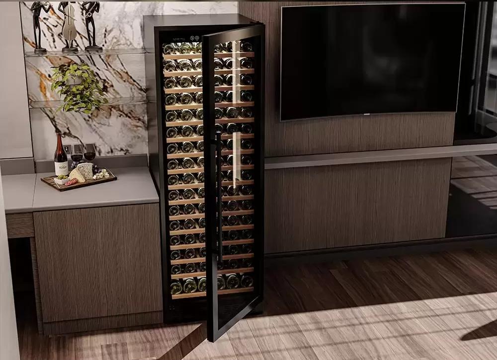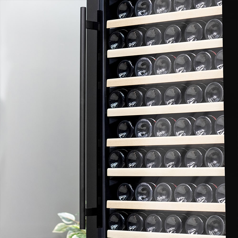 Тип встраивания: в нишу Электронный термостат Материал корпуса: сталь Тип дерева: массив бука Демонстрационное освещение Цвет освещения: белый Память настроек Полка для нестандартных бутылок Размер двери: 164.7х59.5 см Может устанавливаться отдельно