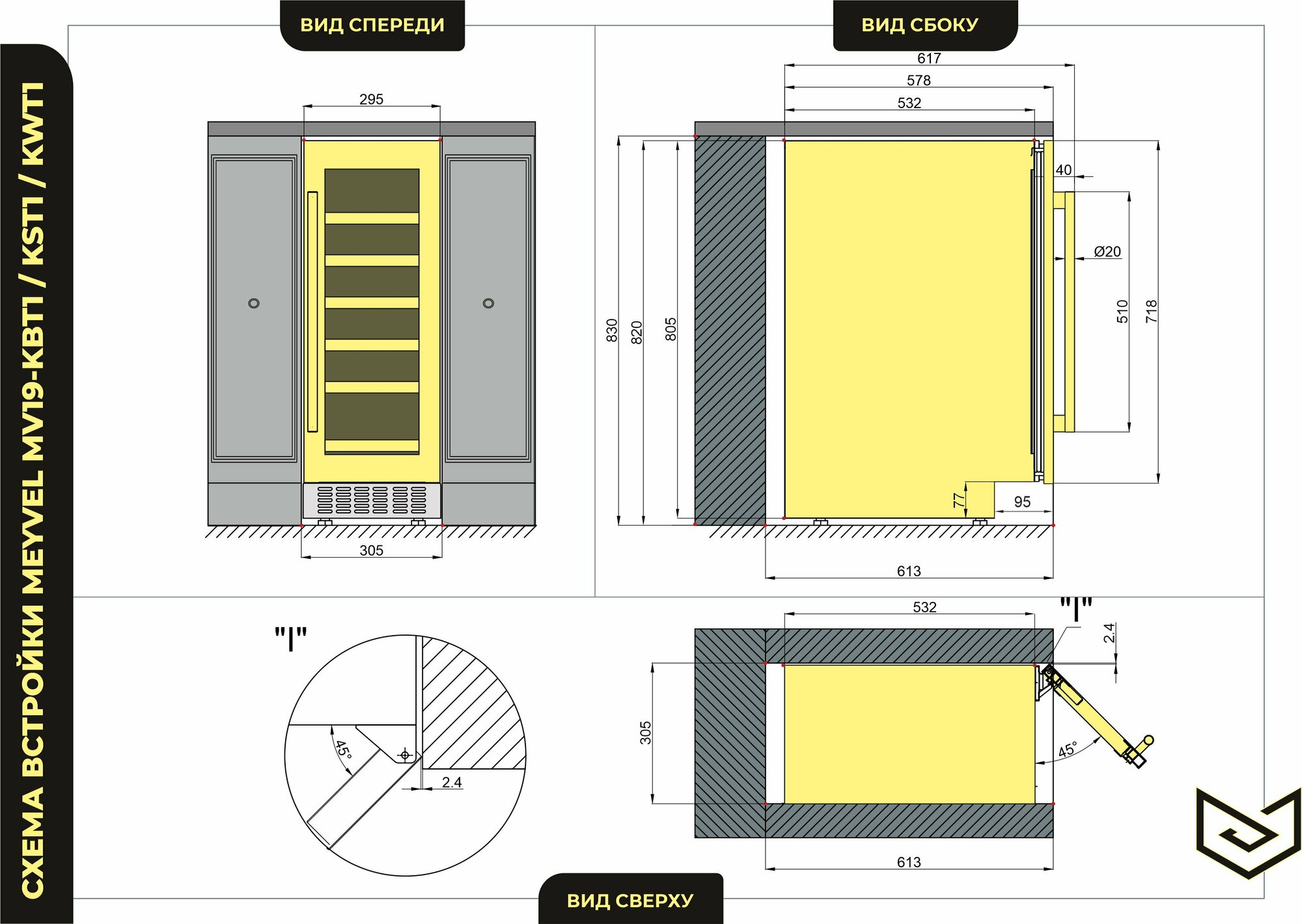 демонстрационное освещение, автоматическая система размораживания, поддерживает влажность в диапазоне 60-80%, тройное стекло двери, регулируемые ножки, углубленный цоколь, встраиваемая и отдельностоящая модель