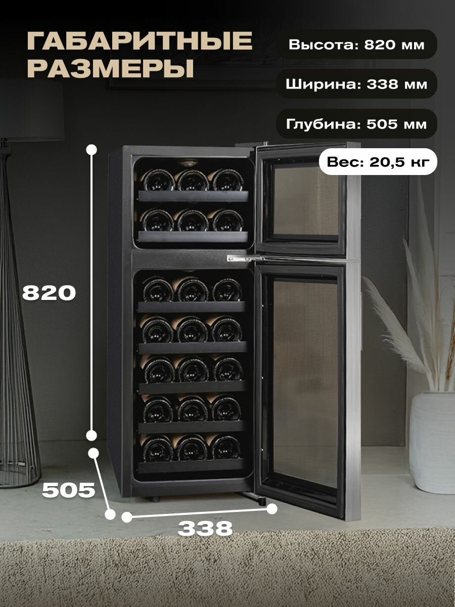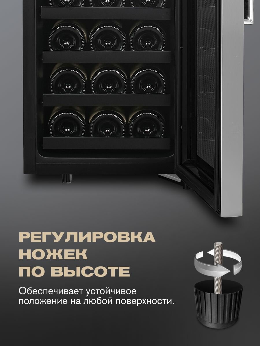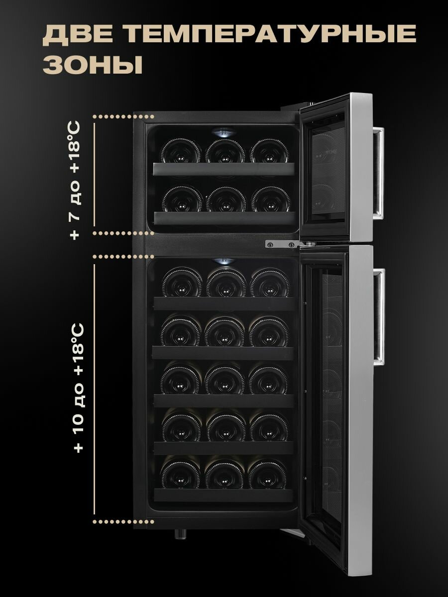 дисплей, Антивибрационная система, Винная камера, Вправо, Дизайнерское оформление, Открывающиеся вправо, Ручки легкого открывания, Светодиодная подсветка, Система контроля влажности