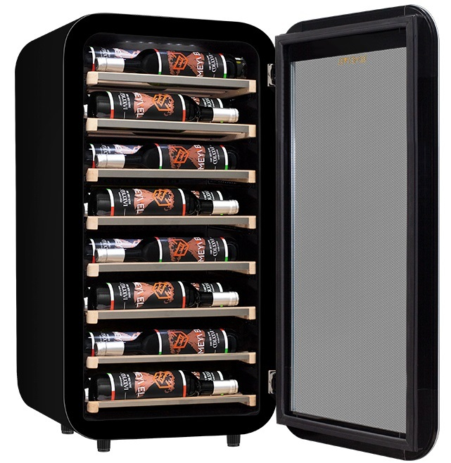 Память настроек Размер двери (ВхШ), мм: 830 х 445 Материал корпуса: Сталь Демонстрационное освещение Тип полок: Выкатные Рамка двери: Чёрная Термостат: Электронный Цвет подсветки: Белый Тип дерева: массив бука