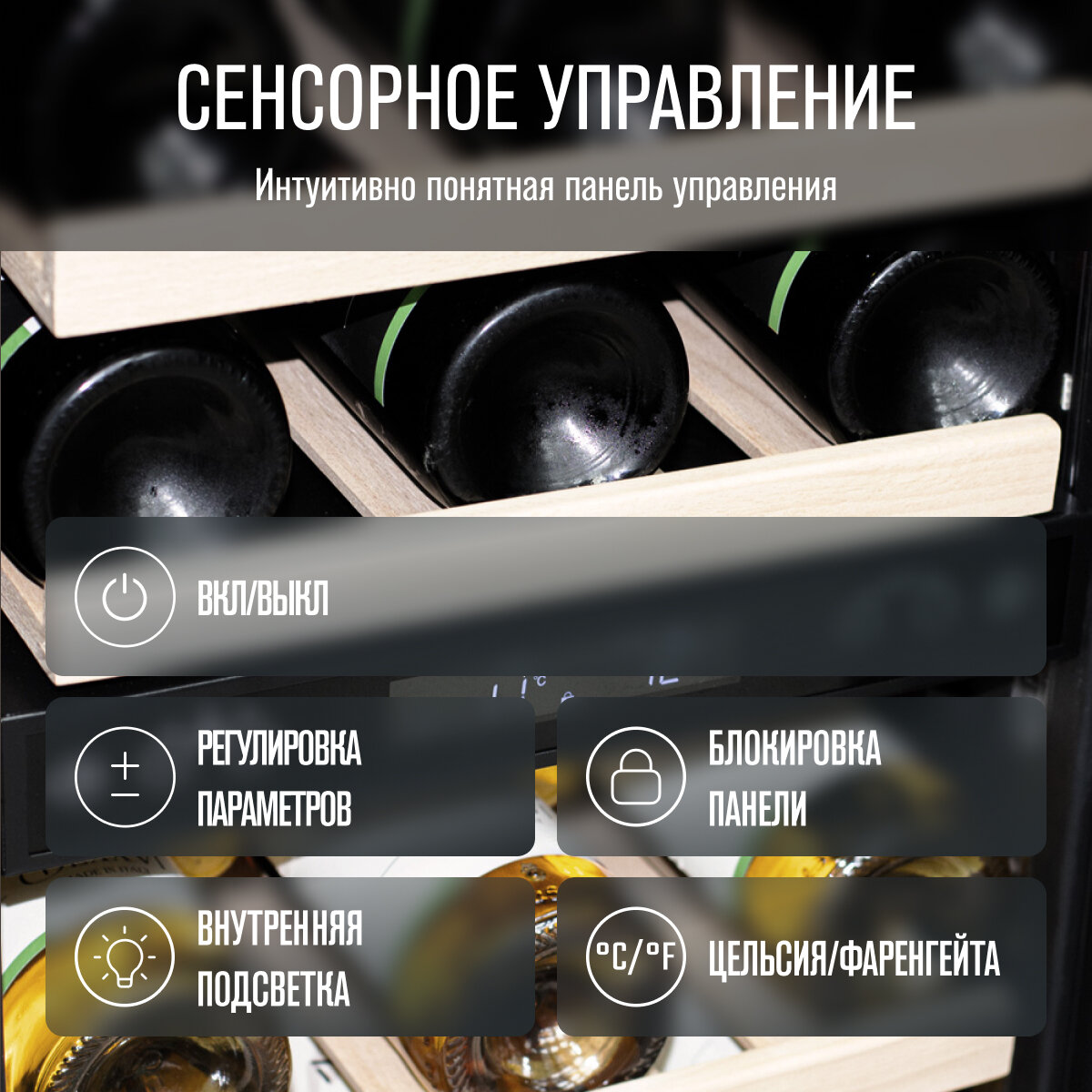 дисплей, перевешиваемые двери, Антивибрационная система, Винная камера, Влево, Вправо, Дизайнерское оформление, Открывающиеся вправо, Работа в неотапливаемом помещении, Ручки легкого открывания, Светодиодная подсветка, Система контроля влажности, автоматическая разморозка, демонстрационное освещение, охлаждение с вентилятором, перенавешиваемые двери, подсветка камеры, регулировка высоты