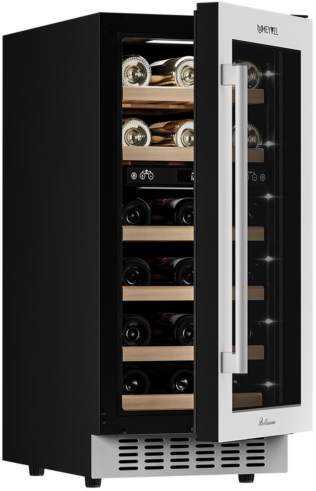 динамическое охлаждение Динамическое охлаждение Динамическая (или вентиляционная) система охлаждения обеспечивает равномерное распределение воздуха вкамере. Благодаря этому нанужном уровне поддерживается нетолько температура, ноивлажность. регулируемые ножки Регулируемые ножки Регулируемые ножки— опция, которой оснащаются винные шкафы любого типа: частично иполностью встраиваемые иотдельно стоящие. Холодильники могут иметь четыре или две ножки изменяемой высоты, которые служат как для выравнивания прибора при установке, так идля изменения его высоты, что особенно важно при частичном встраивании внишу или под столешницу. Для изменения высоты ножку достаточно вывинтить, регулировка может быть как плавной, так инанескольких фиксированных уровнях. Диапазон изменения размера зависит отмодели: максимальное его значение может достигать 7см, аминимальное— 2см.
