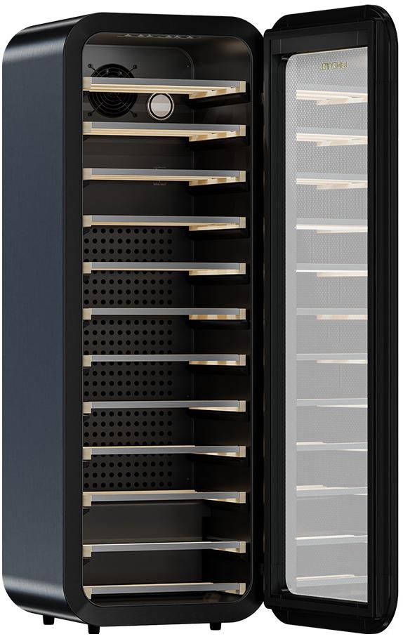 Память настроек Размер двери (ВхШ), мм: 1200 х 445 Материал корпуса: Сталь Демонстрационное освещение Тип полок: Выкатные Рамка двери: Чёрная Термостат: Электронный Цвет подсветки: Белый Тип дерева: массив бука
