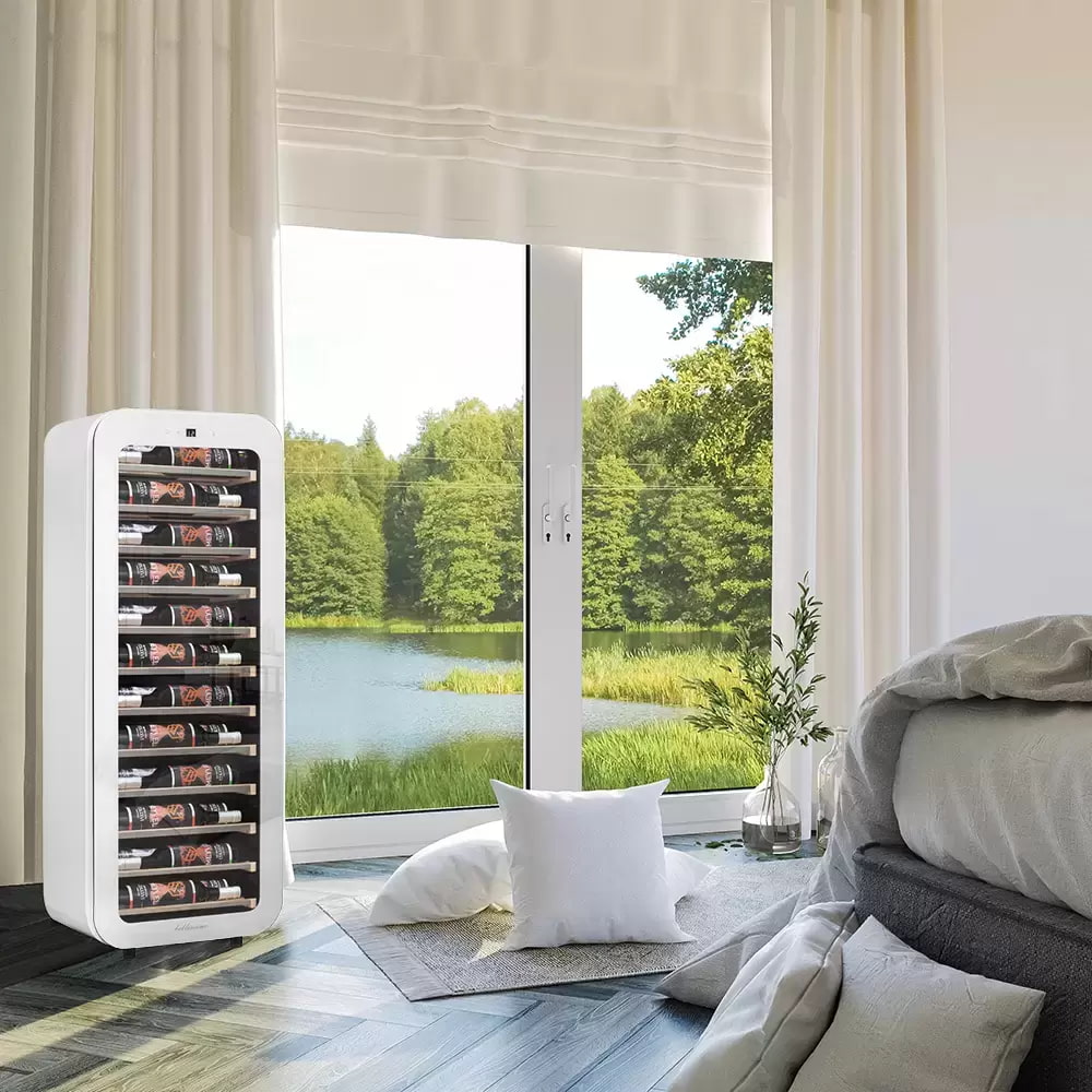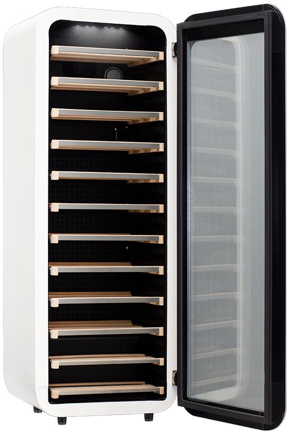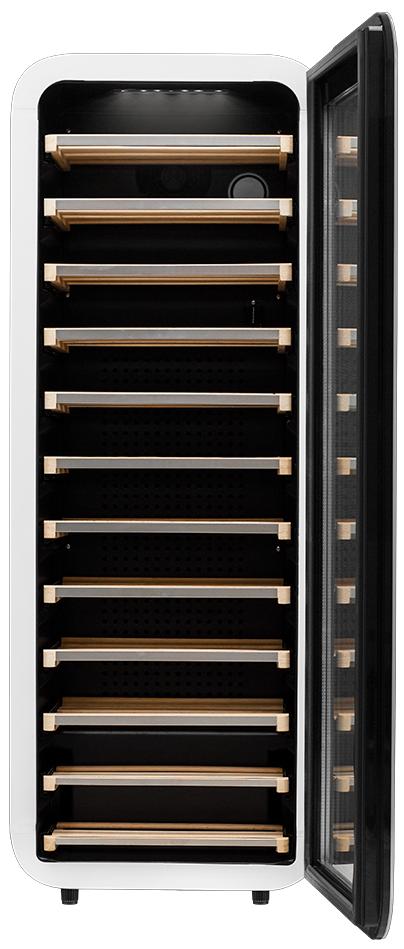 Память настроек Размер двери (ВхШ), мм: 1200 х 445 Материал корпуса: Сталь Демонстрационное освещение Тип полок: Выкатные Рамка двери: Белая Термостат: Сенсорный Цвет подсветки: Белый Тип дерева: массив бука