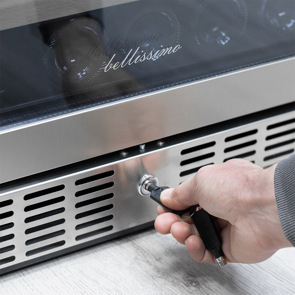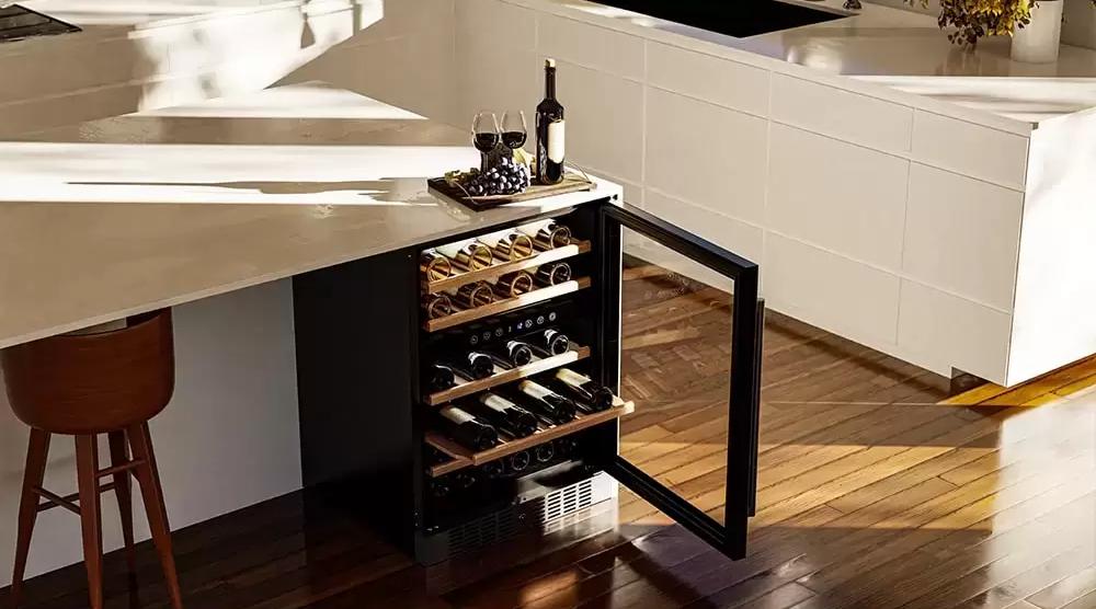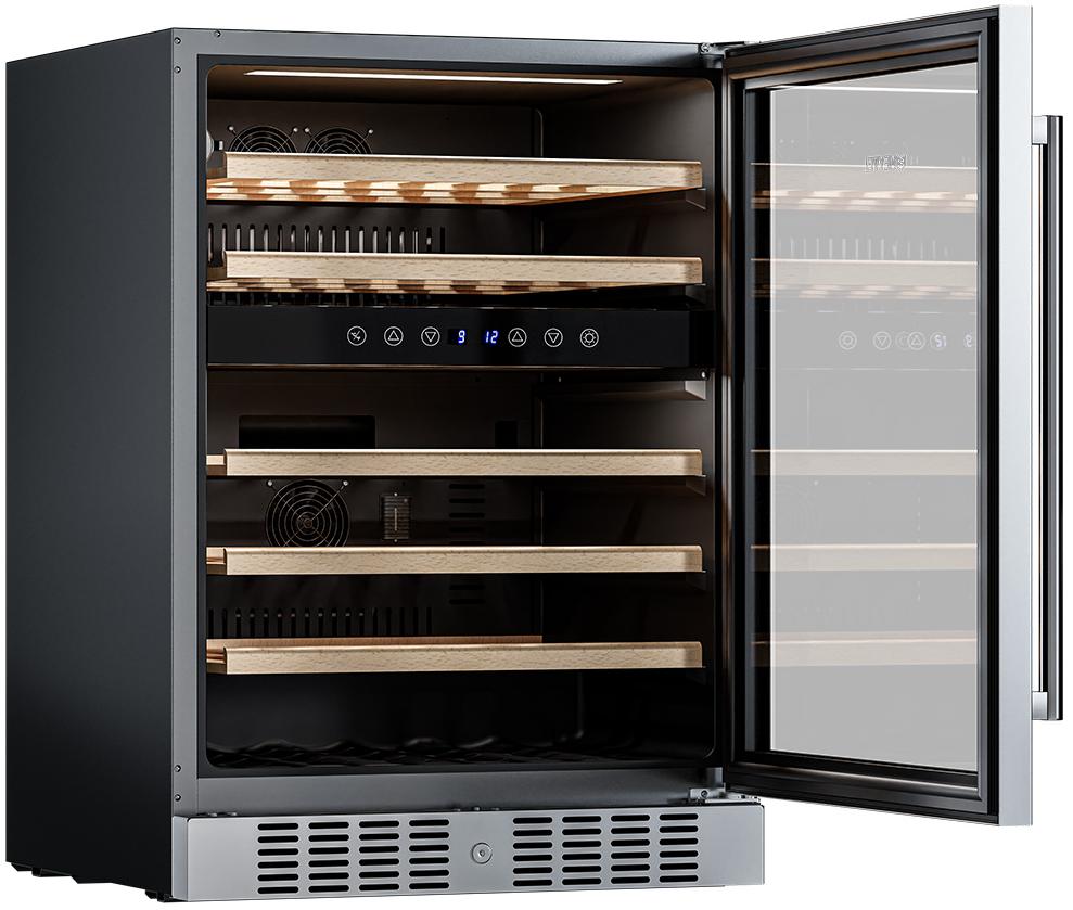 динамическое охлаждение Динамическое охлаждение Динамическая (или вентиляционная) система охлаждения обеспечивает равномерное распределение воздуха вкамере. Благодаря этому нанужном уровне поддерживается нетолько температура, ноивлажность. регулируемые ножки Регулируемые ножки Регулируемые ножки— опция, которой оснащаются винные шкафы любого типа: частично иполностью встраиваемые иотдельно стоящие. Холодильники могут иметь четыре или две ножки изменяемой высоты, которые служат как для выравнивания прибора при установке, так идля изменения его высоты, что особенно важно при частичном встраивании внишу или под столешницу. Для изменения высоты ножку достаточно вывинтить, регулировка может быть как плавной, так инанескольких фиксированных уровнях. Диапазон изменения размера зависит отмодели: максимальное его значение может достигать 7см, аминимальное— 2см.