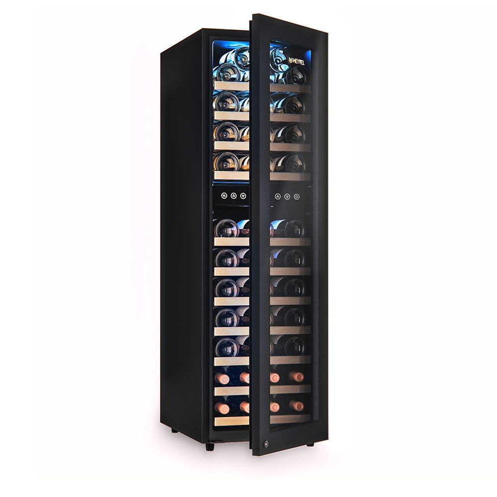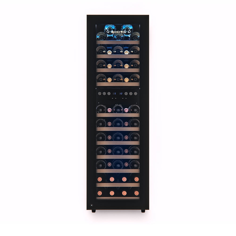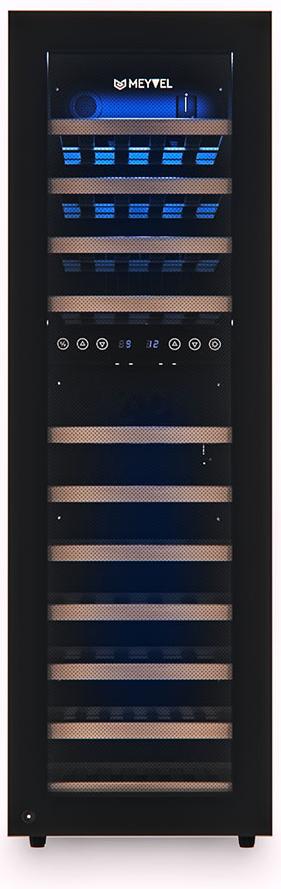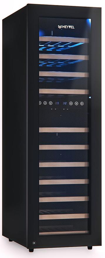 Память настроек Размер двери (ВхШ), мм: 1247 х 400 Ручка двери: Утопленная Материал корпуса: Сталь Демонстрационное освещение Тип полок: Выдвижные (9) / Полуполка (2) Рамка двери: Чёрная Термостат: Электронный Материал полок: массив дуба Угольный фильтр в каждой зоне