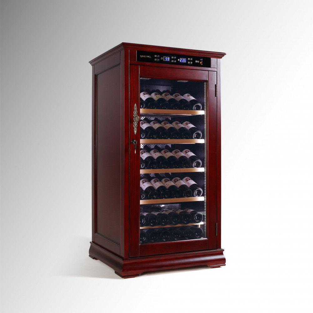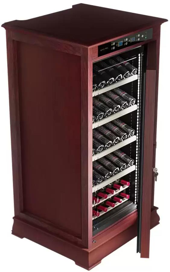 Ручка двери: Стальная Материал корпуса: Стальной обшитый деревом Панорамное освещение Демонстрационное освещение Тип полок: Стационарная (1) / Демонстрационная (1) Термостат: Электронный Полки: массив бука