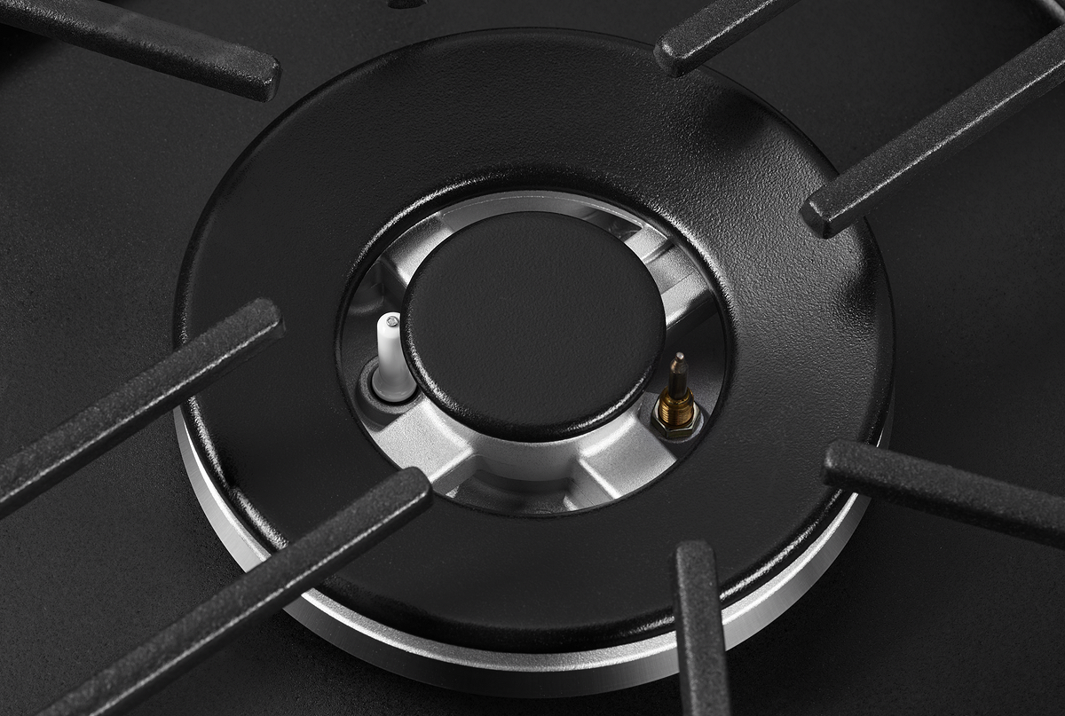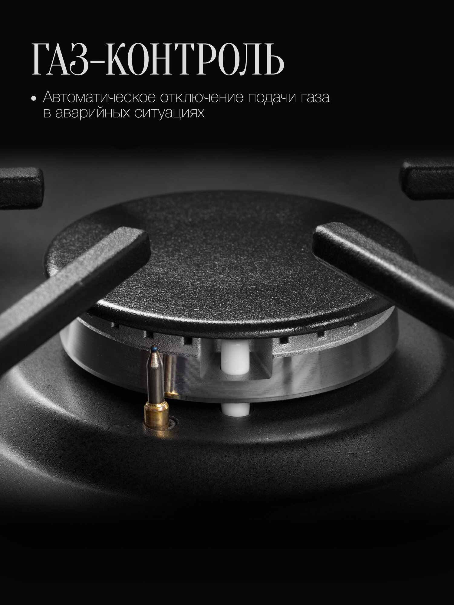 чугунные решетки, газ-контроль, конфорка WOK, электроподжиг в поворотной ручке