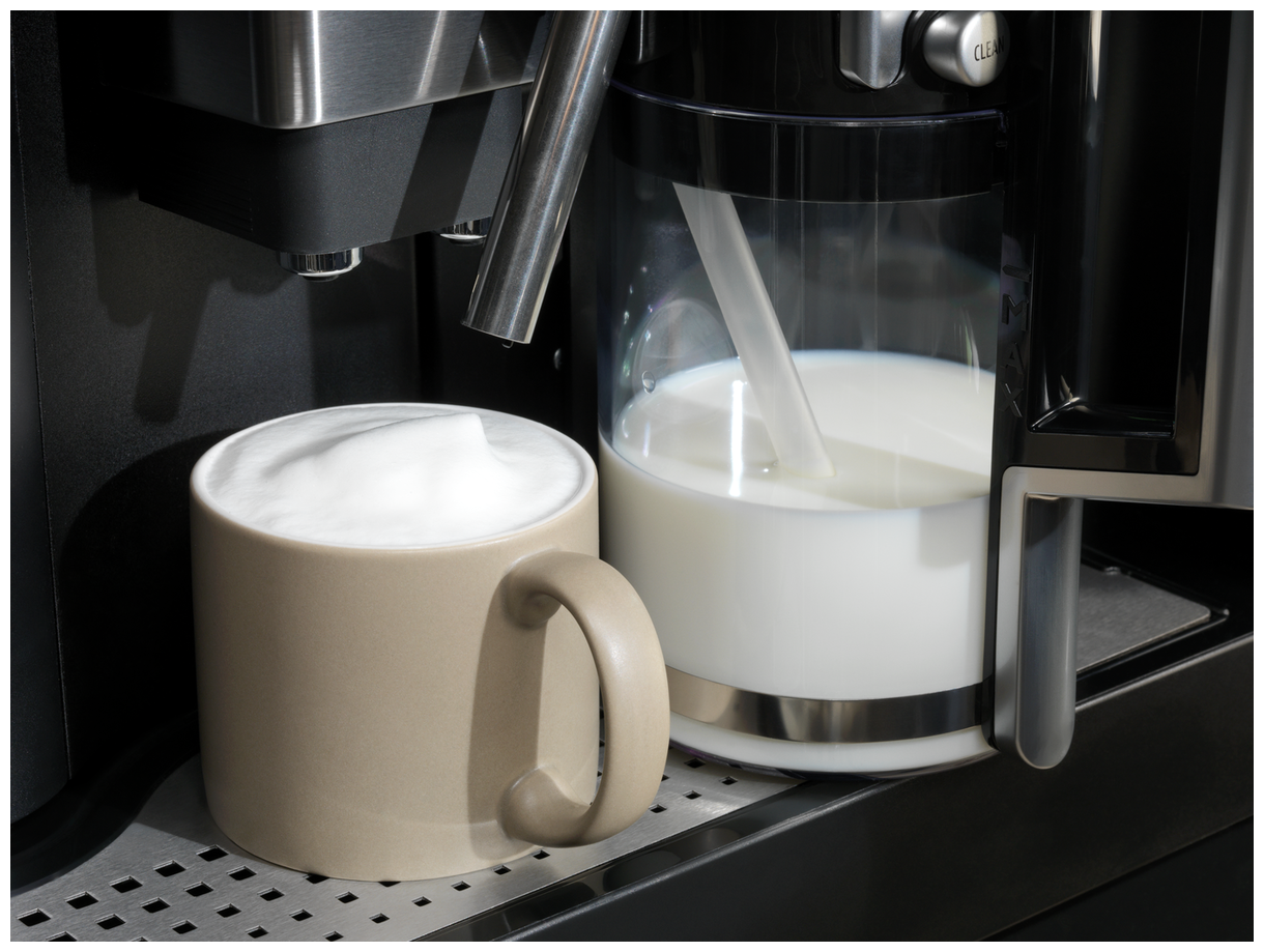 размеры ниши для встраивания 450х560х550 мм; покрытие AntiFingerprint против отпечатков пальцев; индикаторы недостатка зёрен, заполненности емкости для отходов, наличия воды; функция MultiCup для приготовления нескольких чашек кофе за один раз