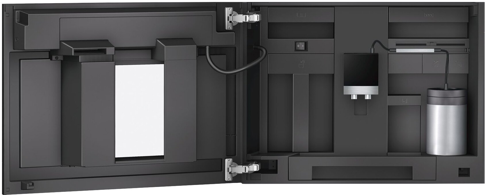сохранение названий 8 любимых кофейных напитков с разнообразным соотношением молока и эспрессо; регулировка сопла подачи кофе и капучинатора по высоте (до 15 см); функция "блокировка от детей"; 3 уровня температуры заваривания; фильтр для воды Brita; автоматическая очистка системы; размер ниши для встраивания: 449 x 558 x 356 мм