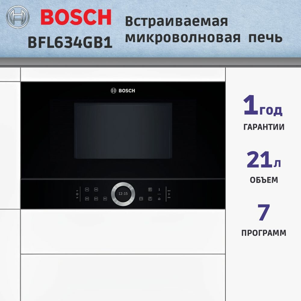 Встраиваемая микроволновая печь, Встраиваемая микроволновая печь BOSCH BFL634GB1 Руководство по эксплуатации, Документация, Инструкция, Кабель питания, Микроволновая печь, Микроволновая печь BOSCH bfl634gb1, без поворотного стола, гарантийный талон, документация, инструкция, инструкция - 1 штука, микроволновая печь - 1 шт, микроволновая печь - 1 шт, документация, Встраиваемая микроволновая печь, инструкция,, упаковка, черный