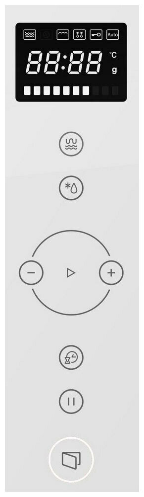 Блокировка управления, Быстрый старт, Таймер, Многоступенчатый режим, Разморозка, Комбинированное приготовление, 8 авторежимов, Сенсорное управление, Дисплей «Cold White», Гриль, Многоступенчатое приготовление, Автоматические программы, Автоматическая разморозка, Функция «Защита детей», Современный дизайн
