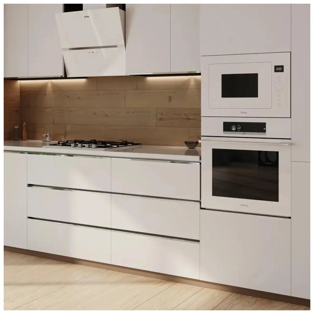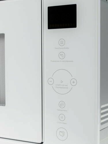 - Дизайн. Микроволновая печь выполнена из белого стекла, современного вида. Стильная микроволновая печь будет дополнением на вашей кухне.