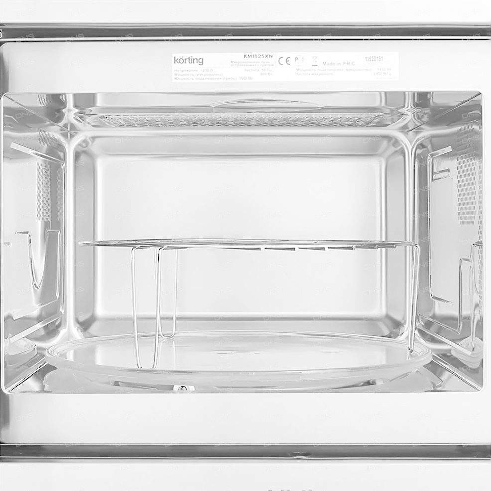 Встраиваемая микроволновая печь Korting KMI 825 XN, Микроволновая печь, вращающееся стеклянное блюдо, подставка для приготовления на гриле, документация, инструкция по эксплуатации, решетка, стеклянный поддон
