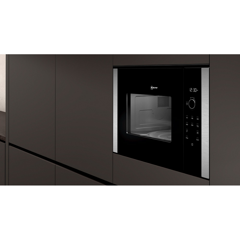 Модель Neff HLAWD53N0 является встраиваемой, причём есть возможность монтажа любым способом: в колонну над другим бытовым кухонным прибором, в подвесном отдельном шкафчике или в кухонном гарнитуре. Встраивание выполняется по понятной инструкции. Микроволновка органично впишется в любой дизайн благодаря классическому и стильному внешнему исполнению в чёрно-стальной гамме. Neff HLAWD53N0 – универсальное решение для абсолютно любой кухни!