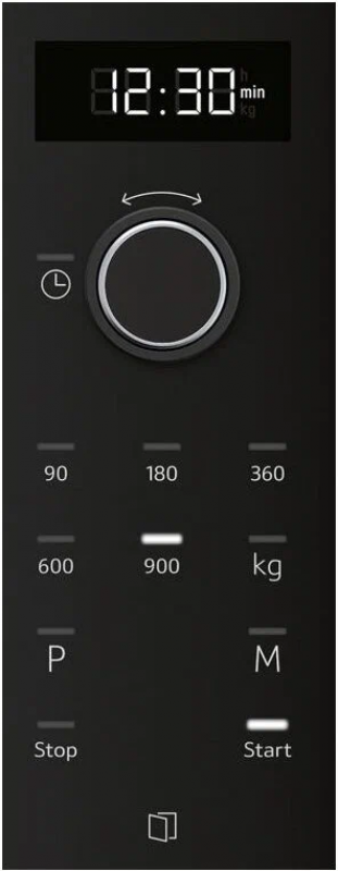 Благодаря электронному управлению пользоваться микроволновкой очень просто. Поворотный утапливаемый переключатель задаёт время и предотвращает случайные переключения. Сенсорные чувствительные кнопки позволяют быстро выбирать программы. Настройки отображаются на чётком дисплее, чтобы вы контролировали процесс. Часы EasyClock возможно использовать не только для установки длительности готовки/размораживания и времени завершения процесса, но и в качестве бытового таймера. А ещё вы можете выбрать одну из ступеней мощности: от 90 ватт до 900.
