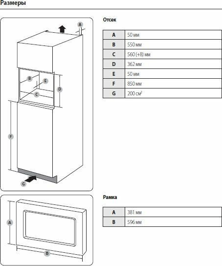 в комплекте проволочная полка, рамка для встраивания, этикетка с краткими инструкциями; подсветка дисплея голубая; часы; эко режим; тип дисплея LED (голубой); энергопотребление (макс.) 2400 Вт; рабочая камера 330 x 211 x 291 мм