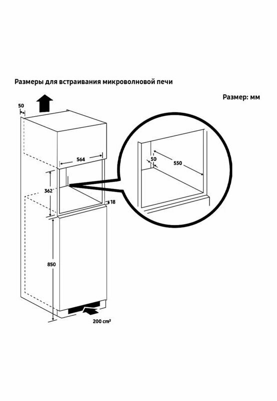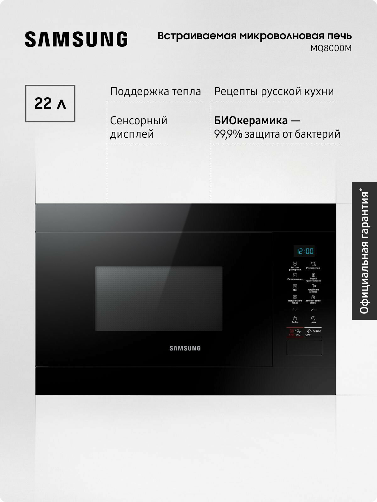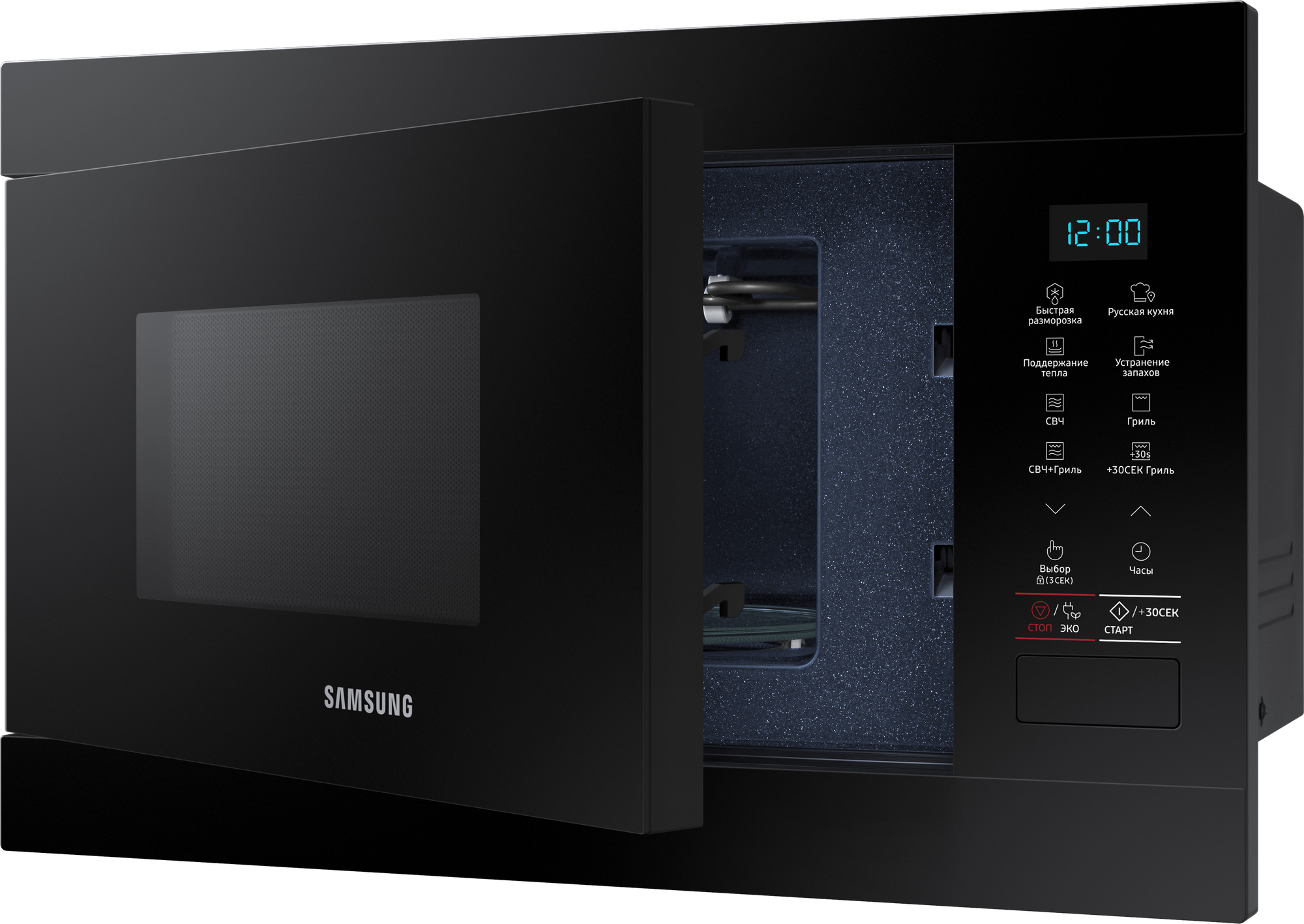 Встраиваемая микроволновая печь Samsung MG22M8054AK/BW черный, 22 л, 850 вт, гриль 1100 вт.