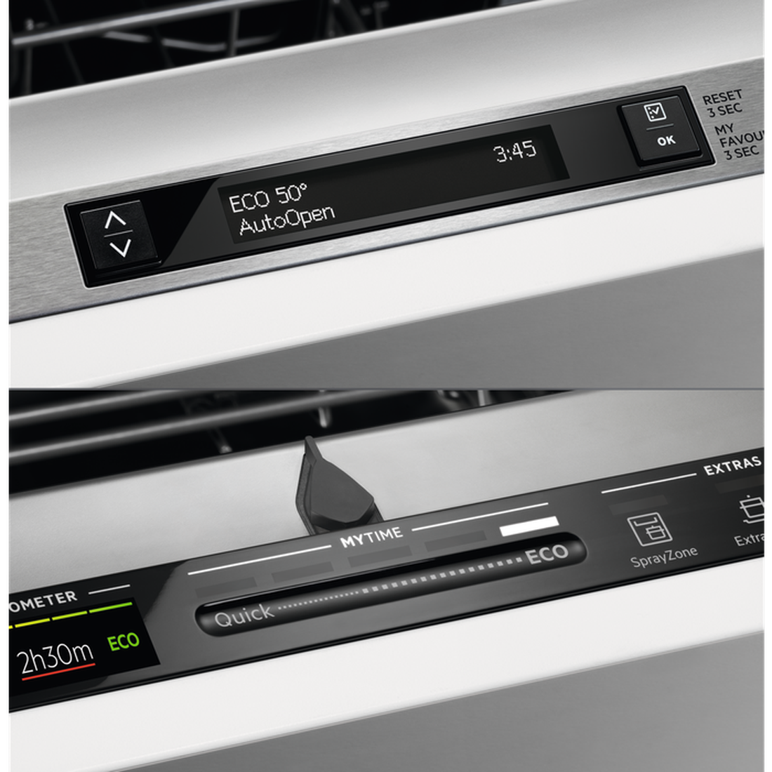 автоматическое открывание дверцы по завершении цикла, внутренняя поверхность из нержавеющей стали, дисплей, использование средств 3 в 1, проточный водонагреватель, регулируемая по высоте корзина для посуды, сенсор чистоты воды, таймер отсрочки, 3-й лоток, Автоматическое открывание двери, Датчик прозрачности воды, Двойное вращающееся коромысло, Звуковой сигнал, Мытье в верхнем коробе, Отсрочка запуска, Поддон для столовых приборов, Полка для чашек, Регулировка высоты корзин, Съемные контейнеры для столовых приборов, Таймер