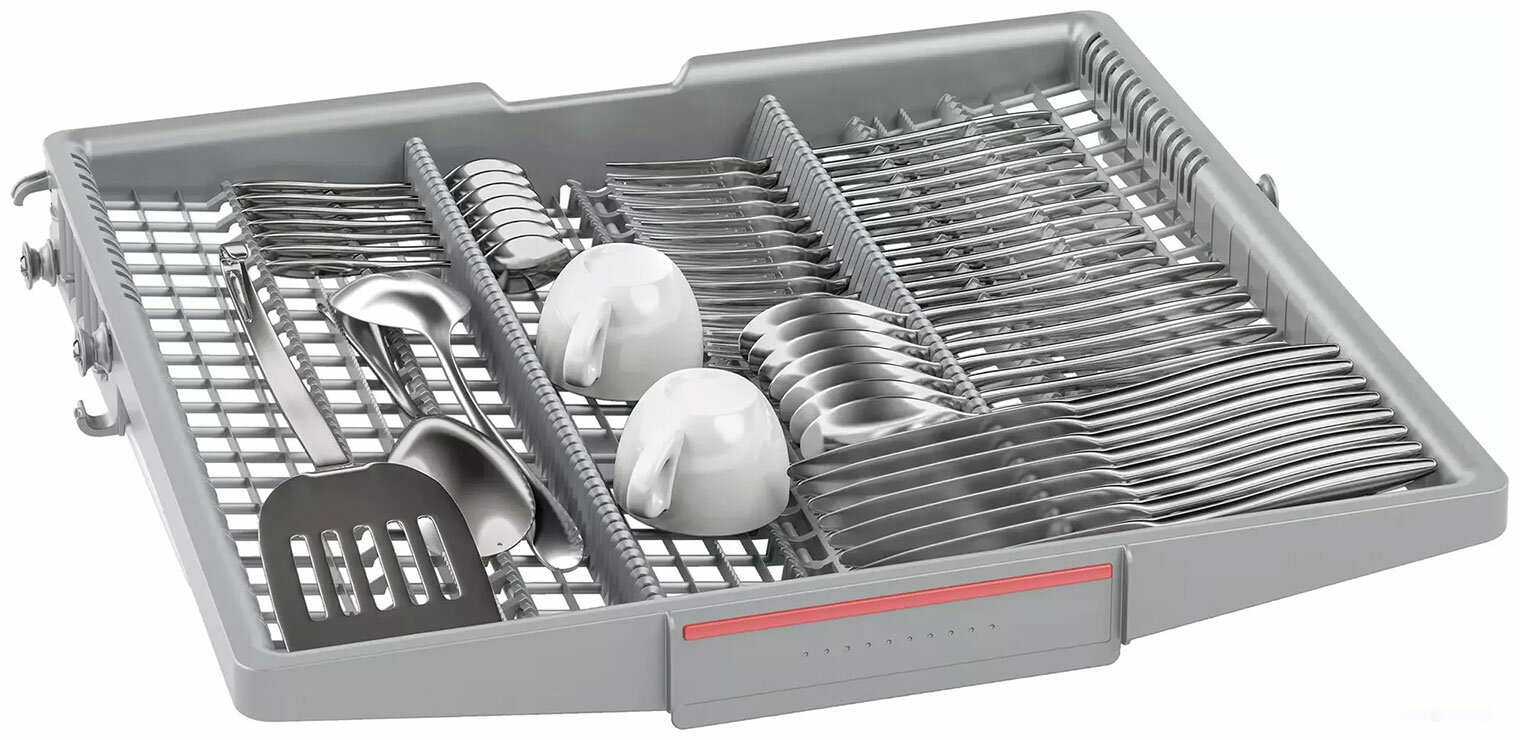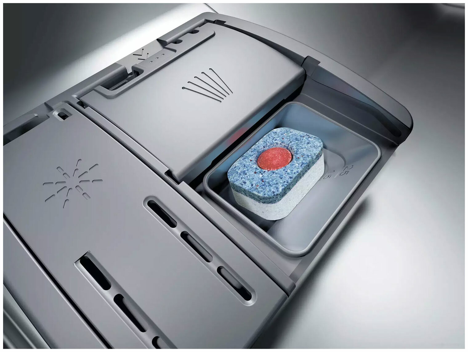 внутренняя поверхность из нержавеющей стали, дисплей, использование средств 3 в 1, открывание без ручки, регулируемая по высоте корзина для посуды, таймер отсрочки, Отсрочка запуска, Полка для чашек, Половинная загрузка, Регулировка высоты корзин, Таймер