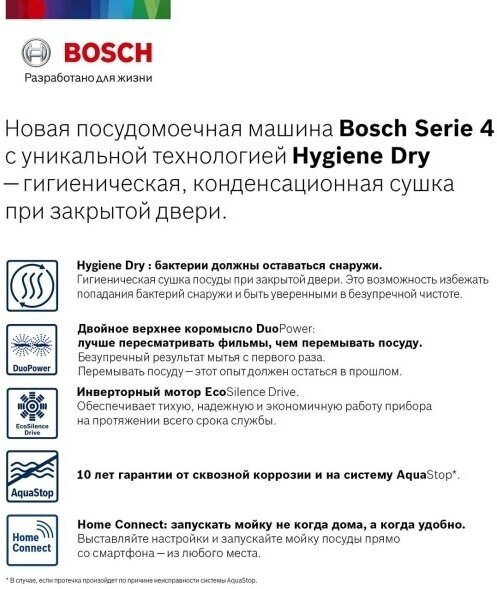 внутренняя поверхность из нержавеющей стали, дисплей, использование средств 3 в 1, проточный водонагреватель, регулируемая по высоте корзина для посуды, сенсор чистоты воды, таймер отсрочки, быстрая мойка, защита от детей, индикатор наличия ополаскивателя, индикатор наличия соли, интенсивная программа, экономичная программа