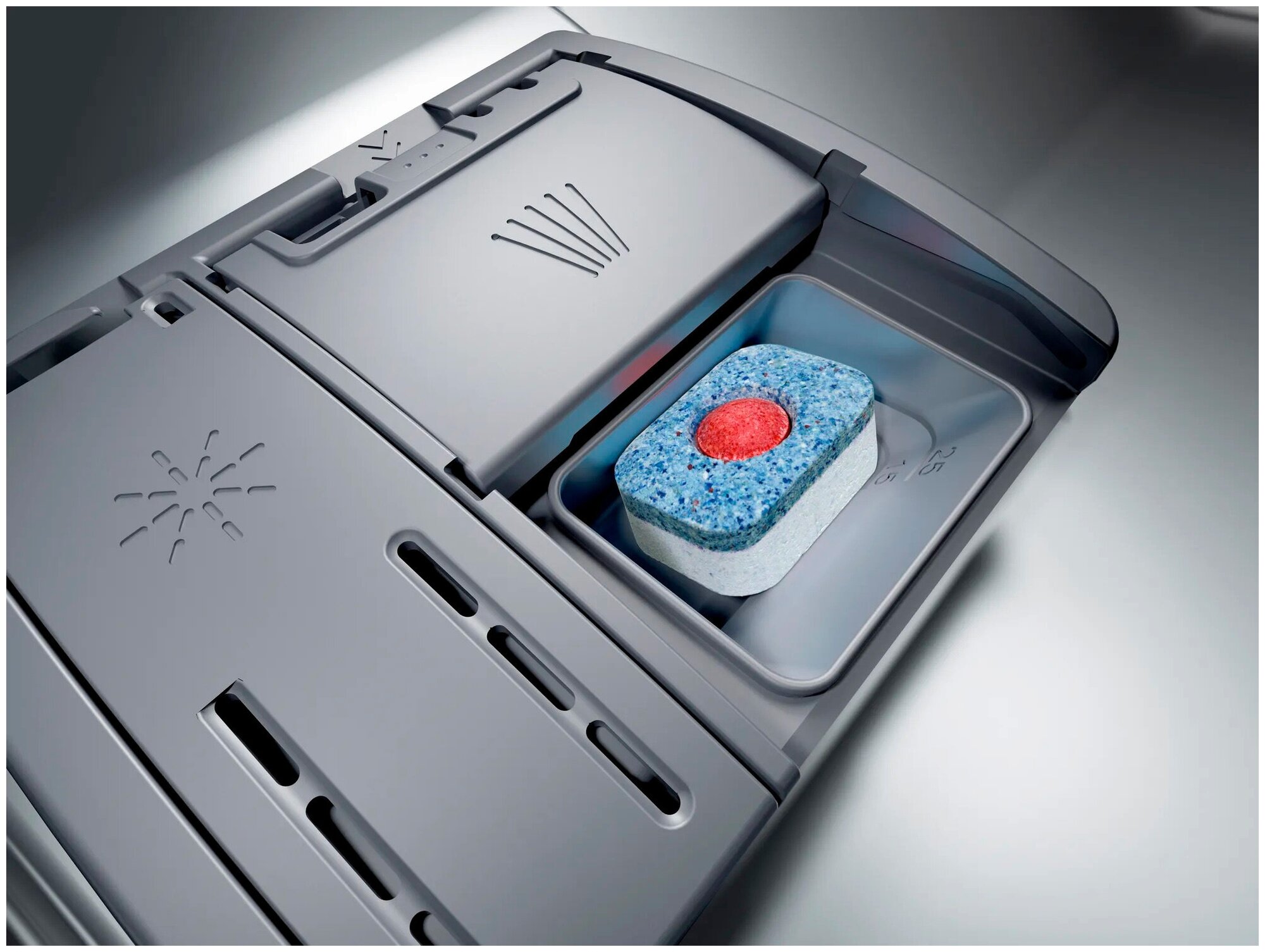 внутренняя поверхность из нержавеющей стали, дисплей, использование средств 3 в 1, регулируемая по высоте корзина для посуды, таймер отсрочки
