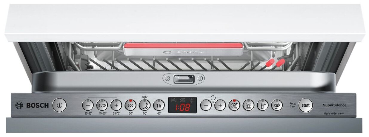 внутренняя поверхность из нержавеющей стали, дисплей, использование средств 3 в 1, регулируемая по высоте корзина для посуды, сенсор чистоты воды, таймер отсрочки