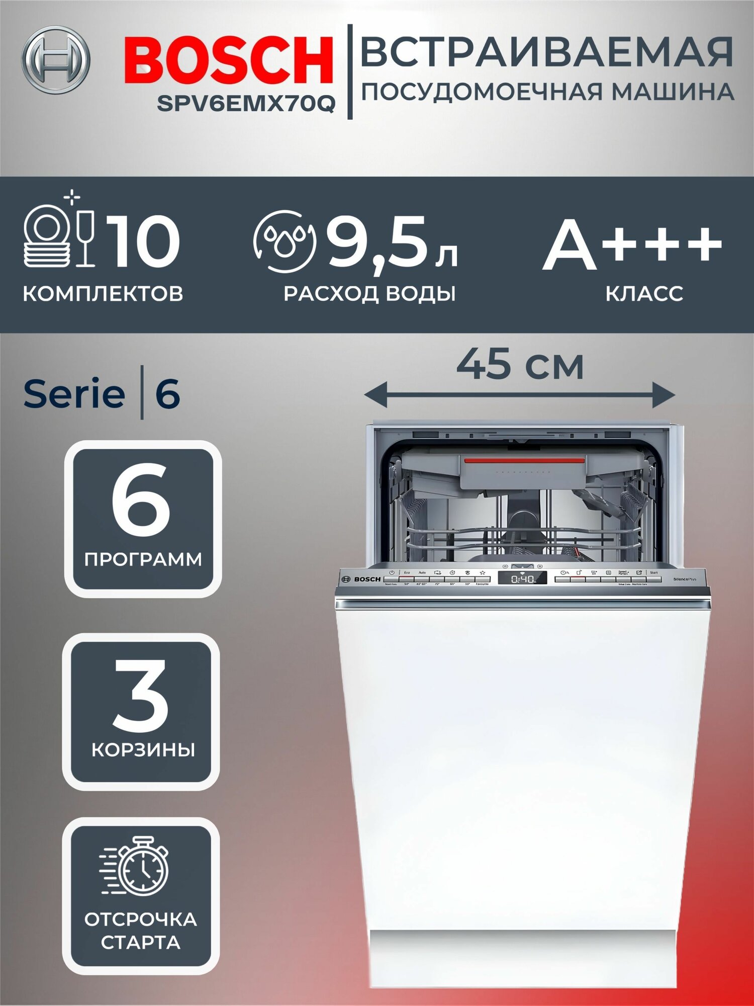 Встраиваемая посудомоечная машина Bosch SPV6EMX70Q