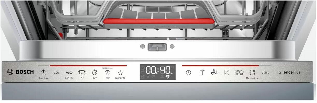 дисплей, использование средств 3 в 1, 3-й лоток, Автоматическое открывание двери, Внутреннее освещение, Возможность добавления посуды после запуска, Датчик прозрачности воды, Звуковой сигнал, Мытье в верхнем коробе, Отключение звукового сигнала, Отсрочка запуска, Поддон для столовых приборов, Полка для чашек, Регулировка высоты корзин, Самоочищающийся фильтр, Таймер, индикатор наличия ополаскивателя, индикатор наличия соли, управление через Wi-Fi