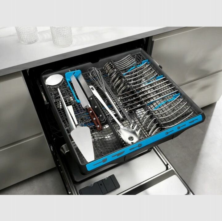 автоматическое открывание дверцы по завершении цикла, внутренняя поверхность из нержавеющей стали, дисплей, использование средств 3 в 1, открывание без ручки, регулируемая по высоте корзина для посуды, сенсор чистоты воды, таймер отсрочки