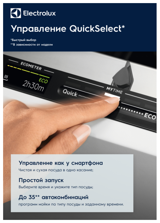 Автоматическое открывание двери, Звуковой сигнал, Отсрочка запуска, Полка для чашек, Регулировка высоты корзин, быстрая мойка, гибкая система крепления фасадов, индикатор наличия ополаскивателя, индикатор наличия соли, корзина QuickLift, предварительное ополаскивание/замачивание, технология AirDry, технология AirDry, корзина QuickLift, гибкая система крепления фасадов, экономичная программа