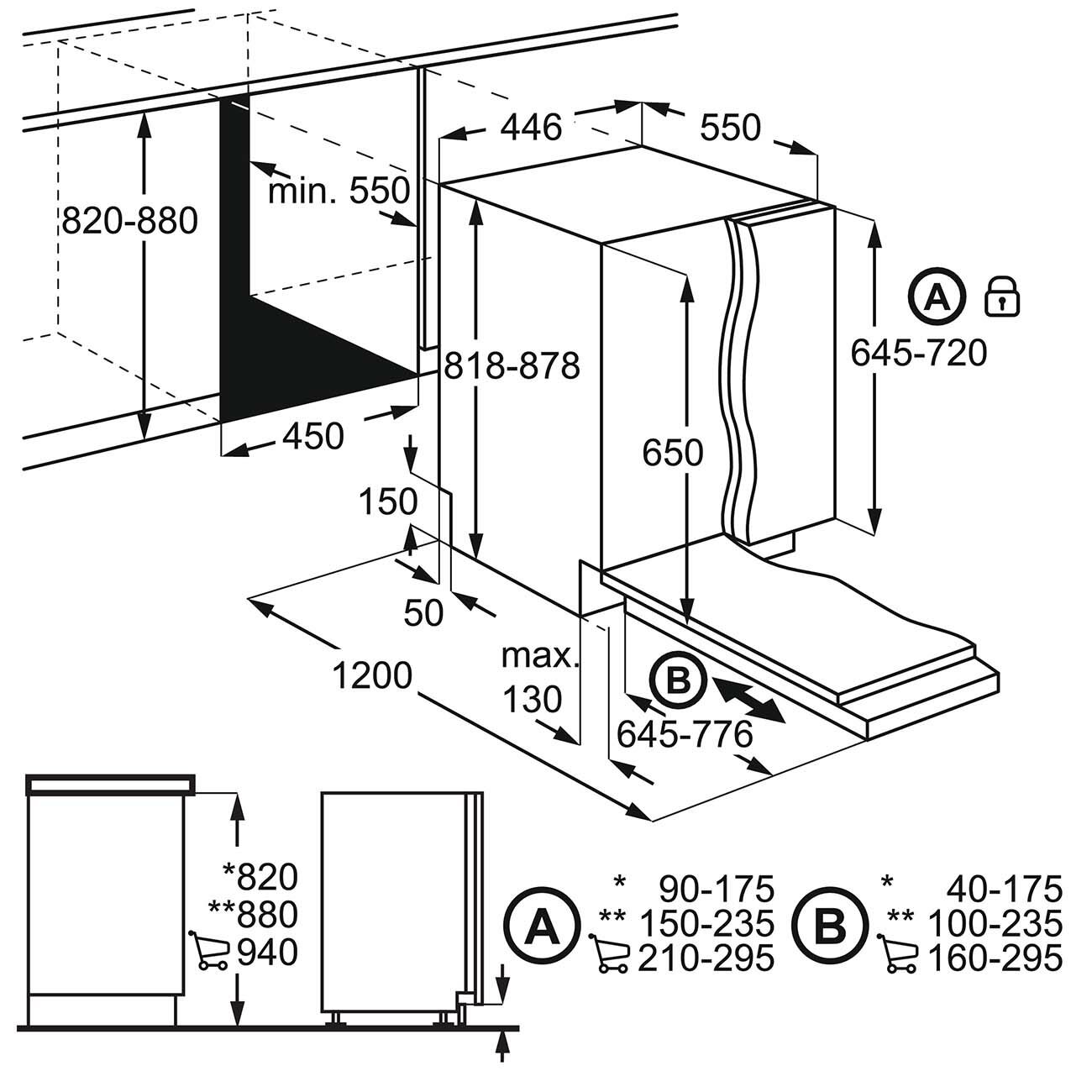 программы мойки: стандартная 160 мин, быстрая 60 мин, стандартная 90 мин, АВТО, ЭКО (4 часа), самоочистка, быстрая 30 минут, предварительное ополаскивание; сенсорное управлением QuickSelect; символьная панель управления; функция автоматического отключения; индикация оставшегося времени; складная полка для чашек; допустимый вес фасада 2-6 кг; крепление двери на скользящих направляющих