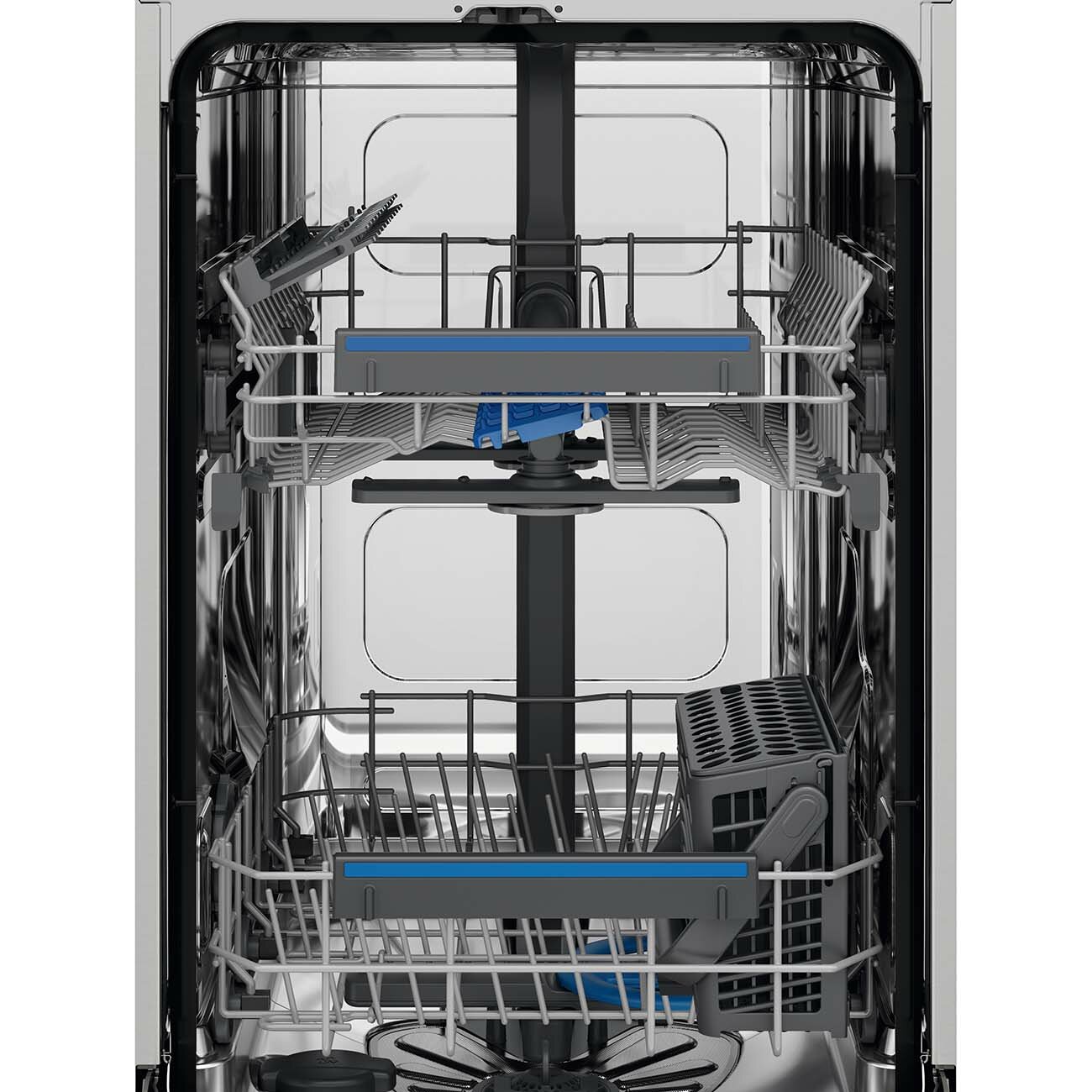 внутренняя поверхность из нержавеющей стали, дисплей, использование средств 3 в 1, регулируемая по высоте корзина для посуды, сенсор чистоты воды, таймер отсрочки, Авто-программа, Быстрая мойка, Звуковой сигнал, Интенсивная мойка, Отсрочка запуска, Полка для чашек, Половинная загрузка, Предварительное ополаскивание, Регулировка высоты корзин, Таймер, корзина для столовых приборов, корзина с системой QuickiLift, разбрызгиватель SatelliteClean, технология AirDry