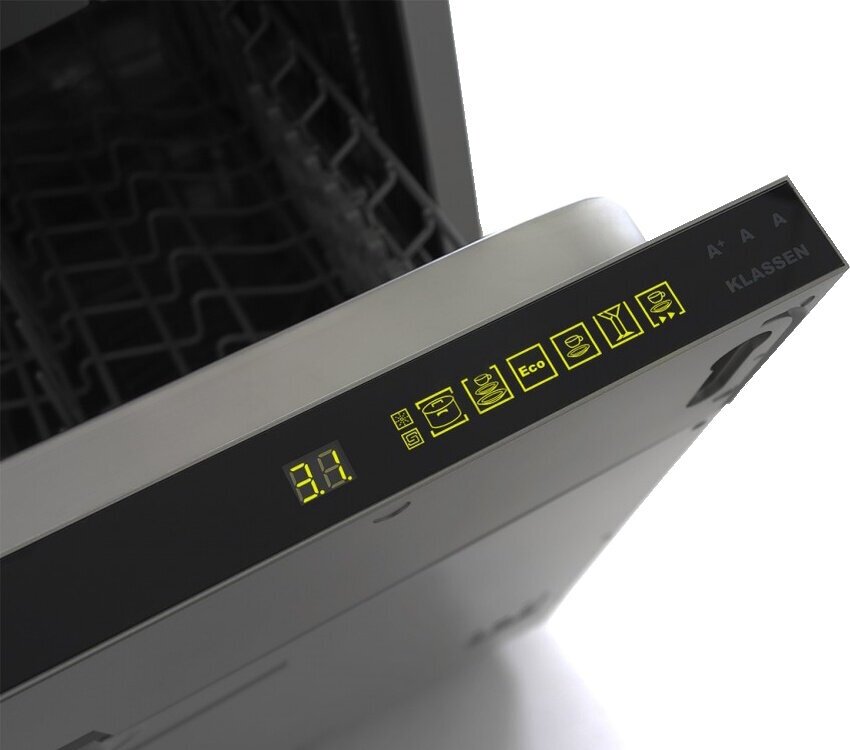 внутренняя поверхность из нержавеющей стали, дисплей, использование средств 3 в 1, регулируемая по высоте корзина для посуды, таймер отсрочки, быстрая мойка, деликатная мойка, индикатор наличия ополаскивателя, индикатор наличия соли, предварительное ополаскивание/замачивание, экономичная программа