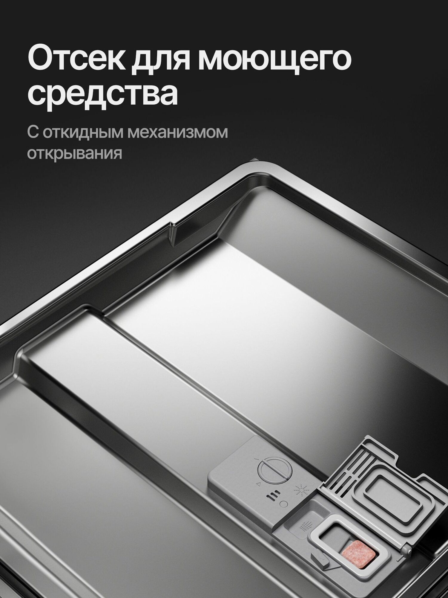 дисплей, использование средств 3 в 1, Отсрочка запуска, Поддон для столовых приборов, Полка для чашек, Половинная загрузка, Регулировка высоты корзин, Съемные контейнеры для столовых приборов