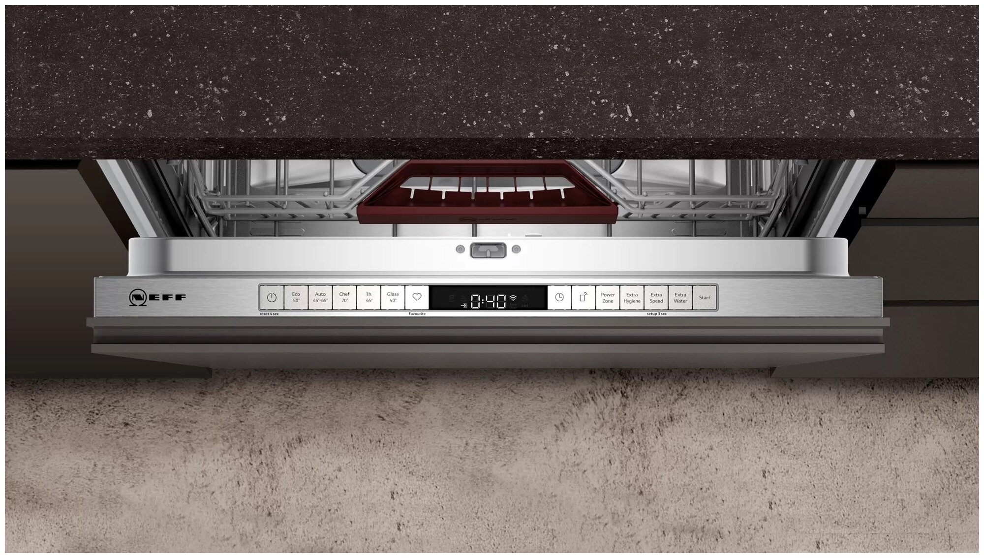 Neff S155HCX10R – это не просто посудомойка, а умный прибор, который станет частью единого продуманного домашнего пространства. С технологией Home Connect вы можете выбирать программы и задавать нужные параметры дистанционно, находясь в другой комнате или даже вне дома. Управляйте устройством с помощью гаджета, изучайте полезные рекомендации, осуществляйте сервис удалённо и даже обновляйте из приложения программное обеспечение. Будущее уже наступило.