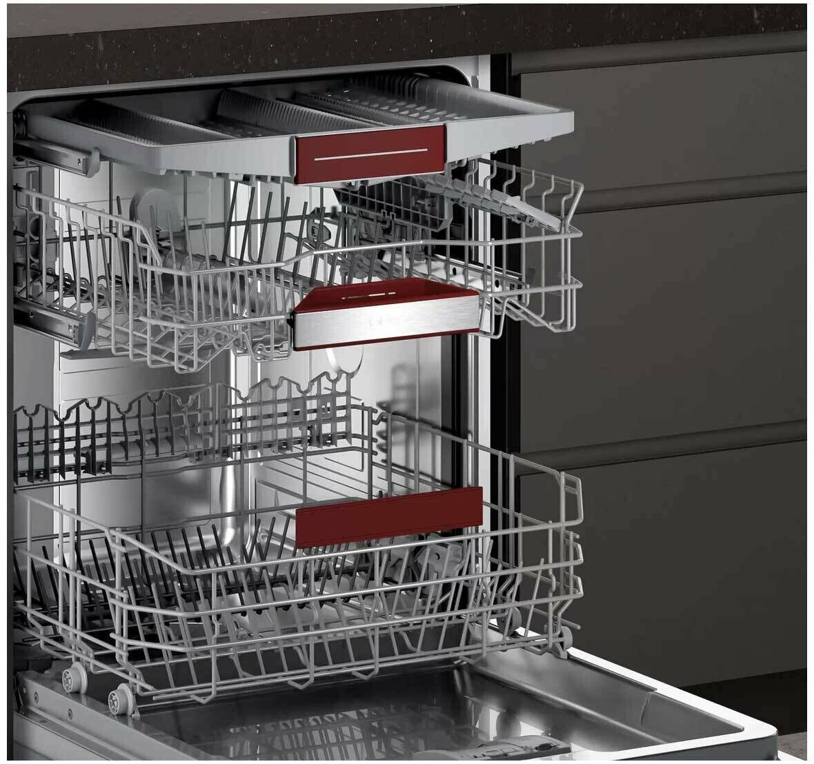 Посудомоечная машина Neff S155HCX10R вымоет посуду после лёгкого завтрака, семейного обеда или званого ужина с гостями. С системой Rackmatick возможно оптимально отрегулировать высоту коробов камеры всего одним движением, чтобы в рабочем пространстве уместились и чашки, и тарелки, и большие кастрюли, и противни.