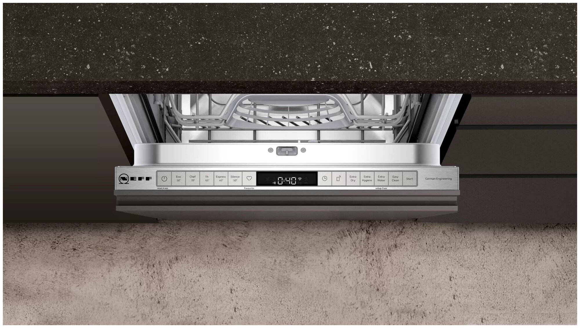 С посудомоечной посудой Neff S855HMX70R вы получаете максимально объёмное, эргономичное и гибко моделируемое внутреннее пространство.