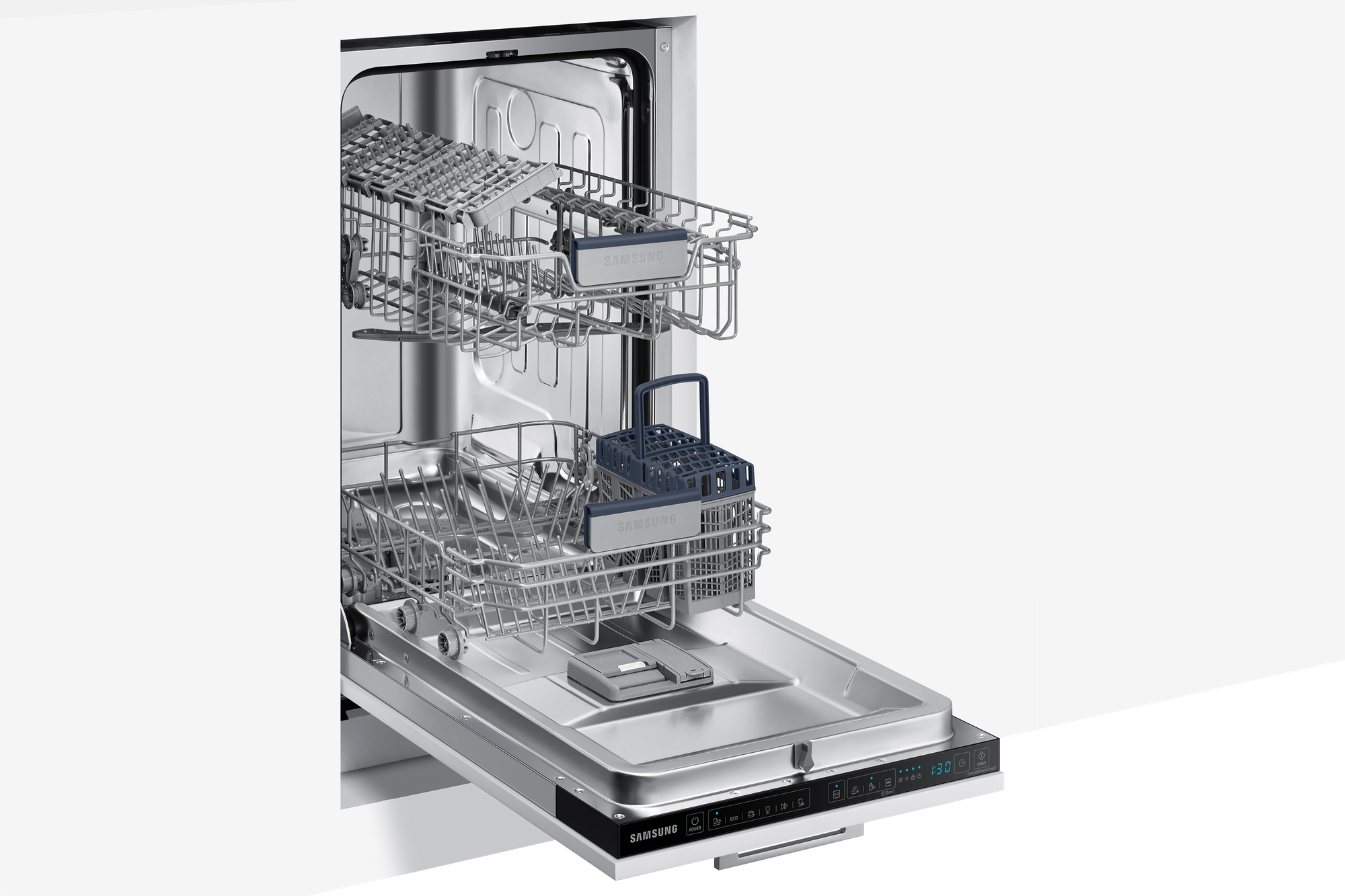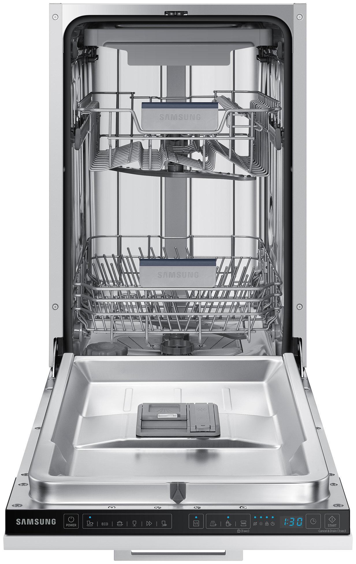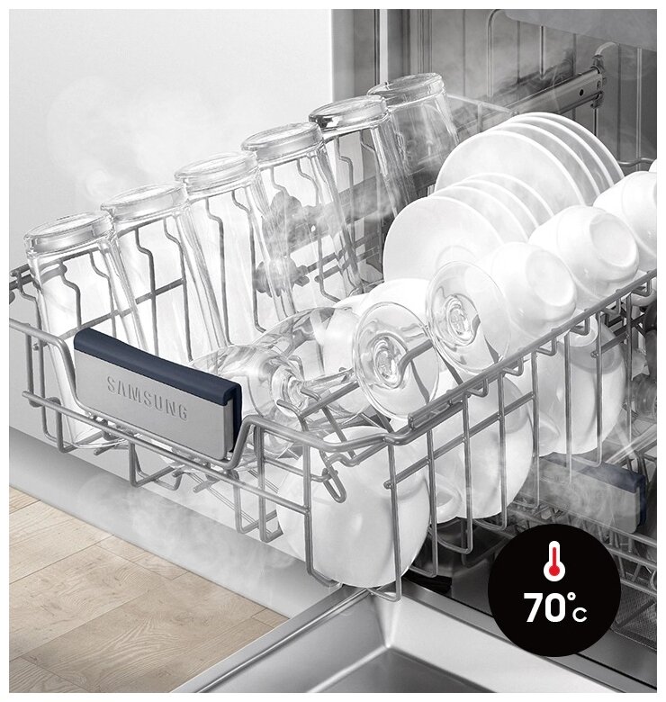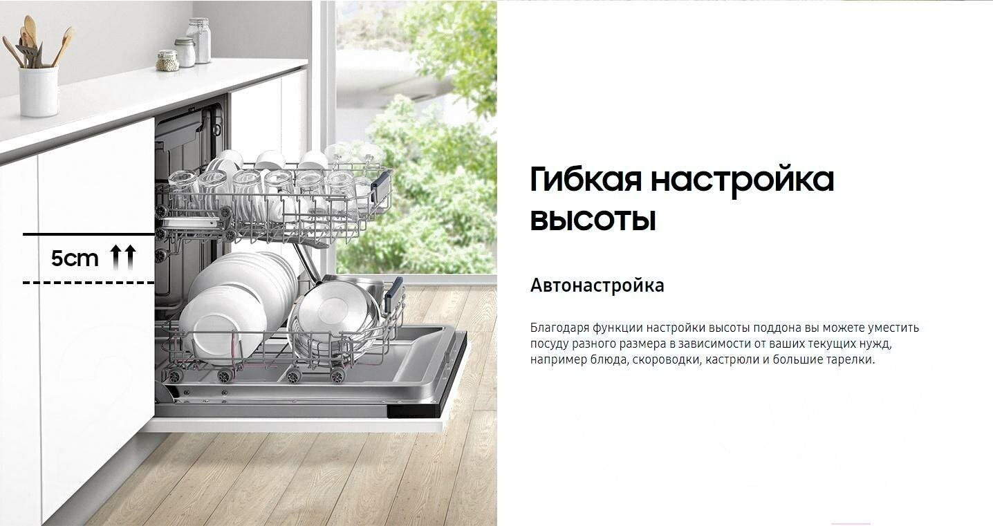 внутренняя поверхность из нержавеющей стали, дисплей, использование средств 3 в 1, подсветка камеры, регулируемая по высоте корзина для посуды, сенсор чистоты воды, таймер отсрочки, Автоматическое открывание двери, Звуковой сигнал, Отсрочка запуска, Половинная загрузка, Регулировка высоты корзин, Съемные контейнеры для столовых приборов, Таймер, быстрая мойка, деликатная мойка, защита от детей, индикатор наличия ополаскивателя, индикатор наличия соли, экономичная программа