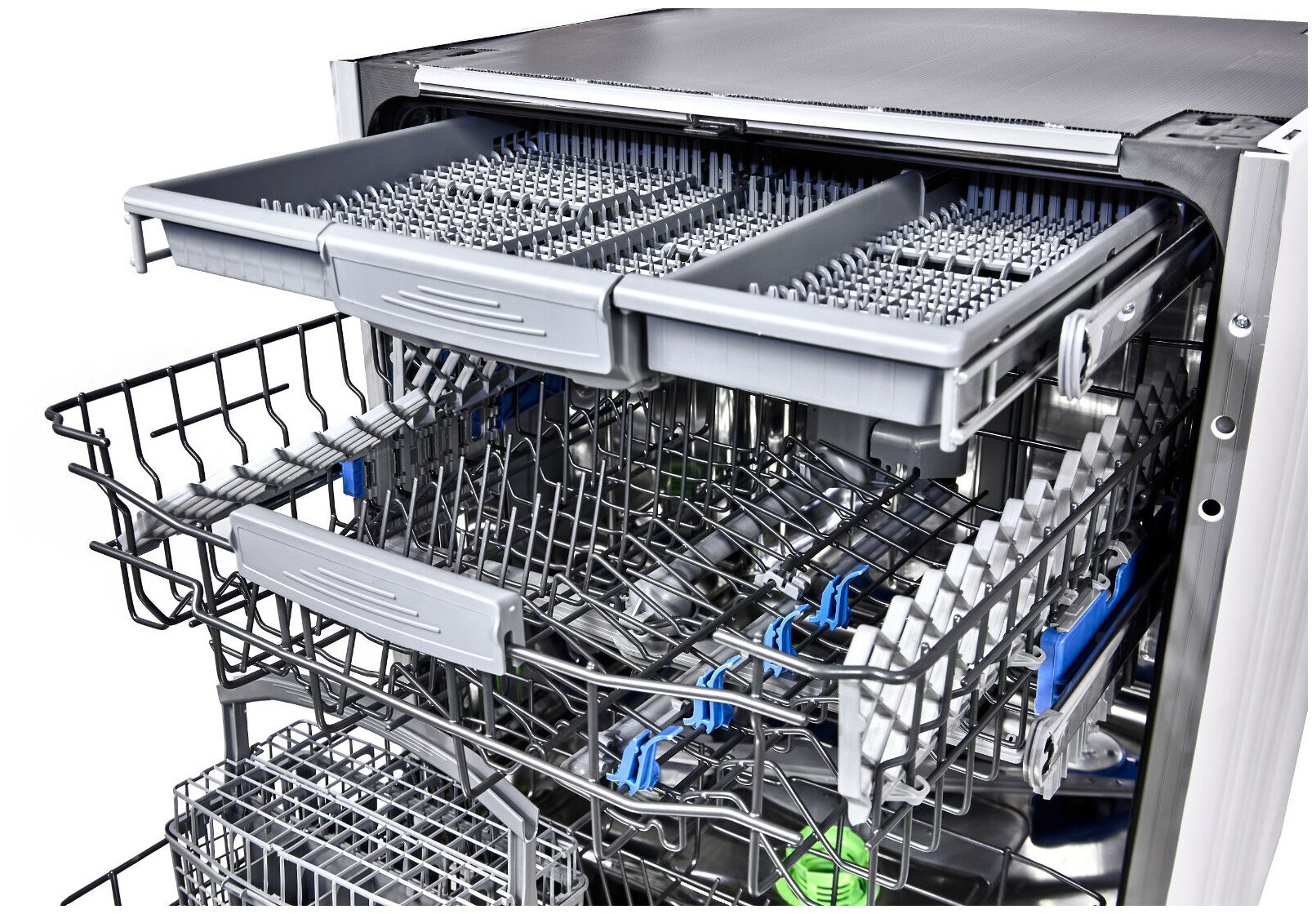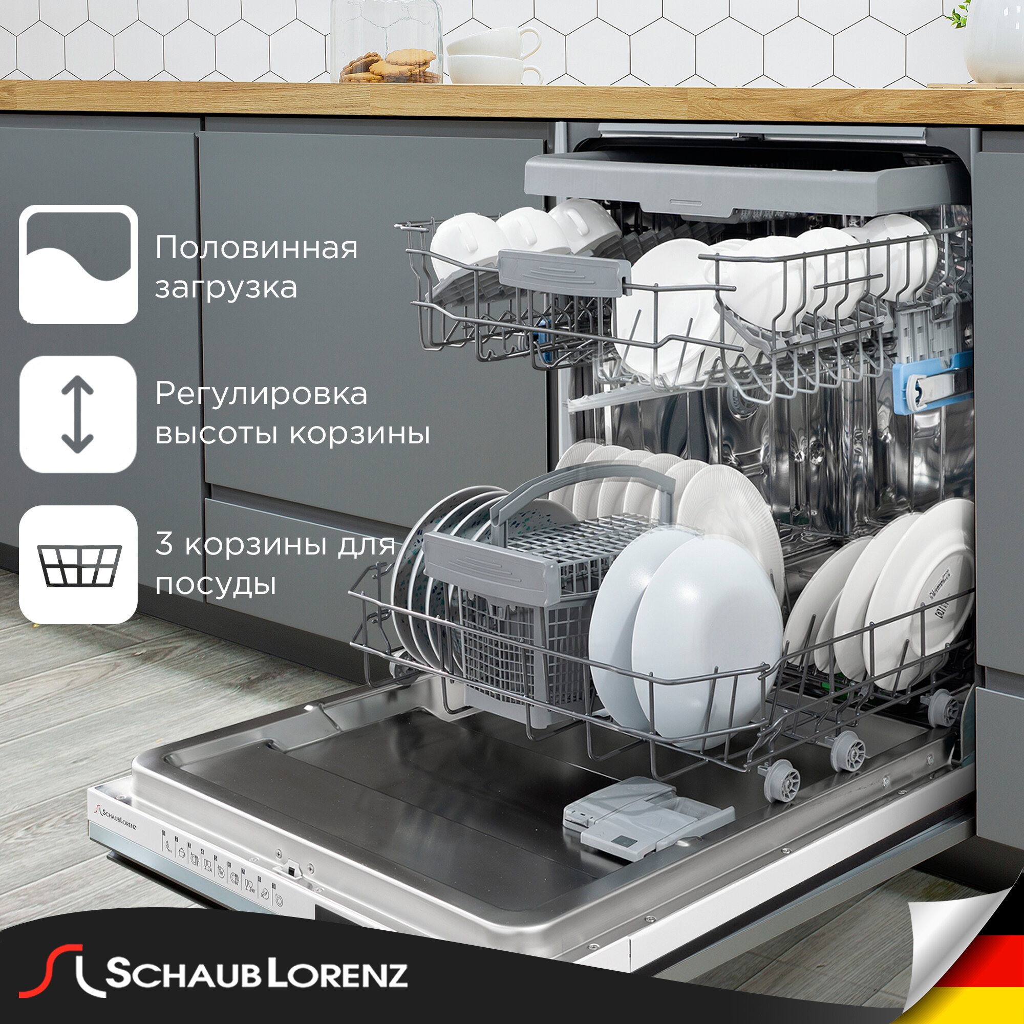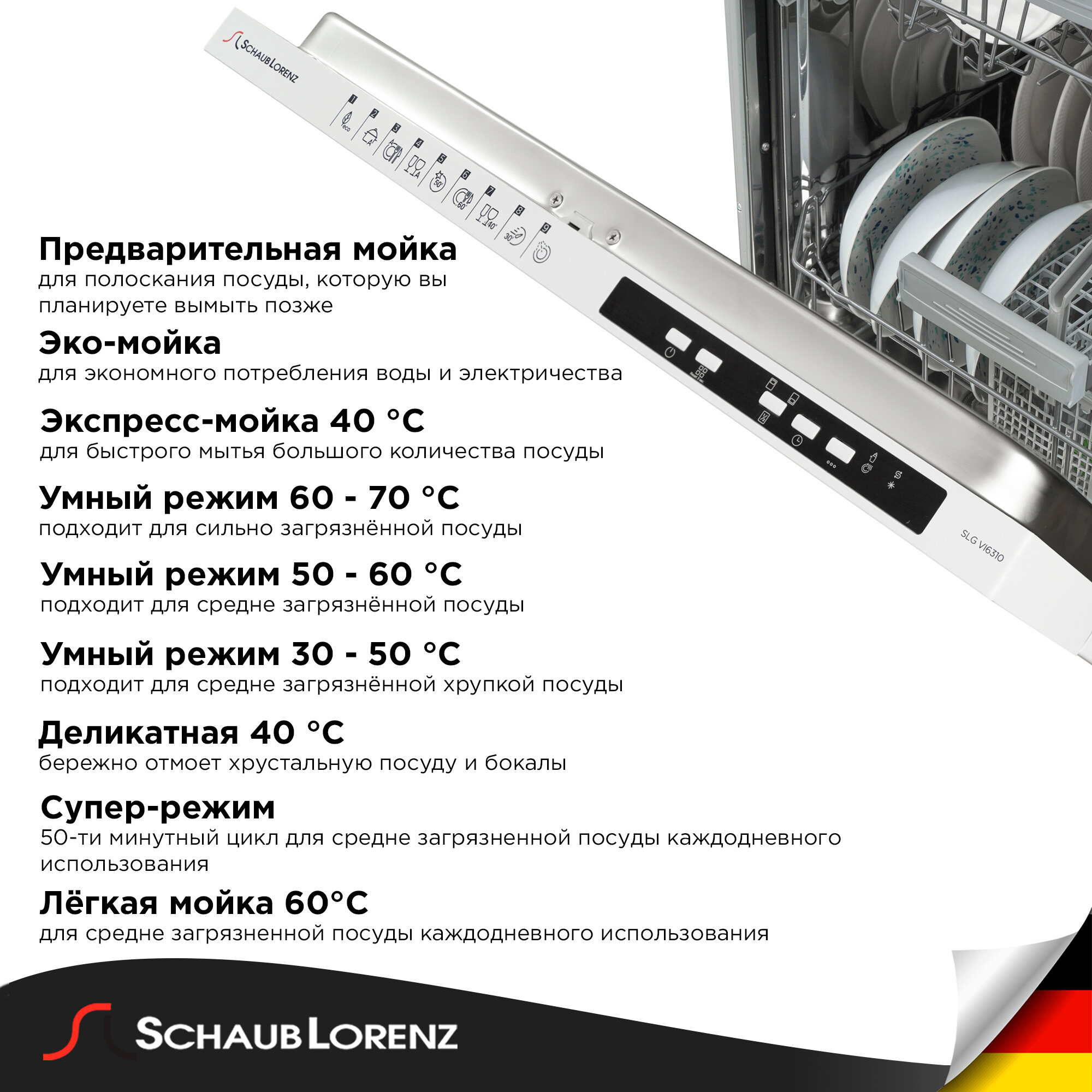 Регулировка высоты корзины, Третий уровень загрузки, Звуковой сигнал, Регулировка высоты верхней корзины, Антибактериальный фильтр, Сенсор мутности воды Smart Wash